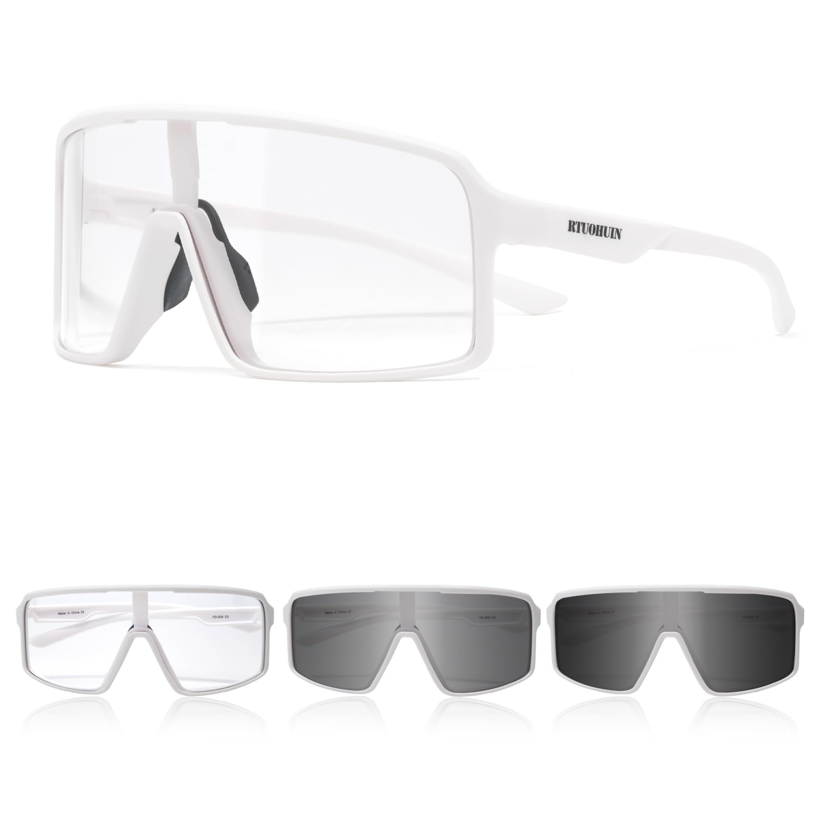 RTUOHUIN Self-Tinting Cycling Glasses for Men Women Photochromic Sports Sunglasses UV400 Protection Clear Road Cycling Glasses TR90 Frame Fast Cycling for Cycling, Running, Outdoor Sports - Sand-White
