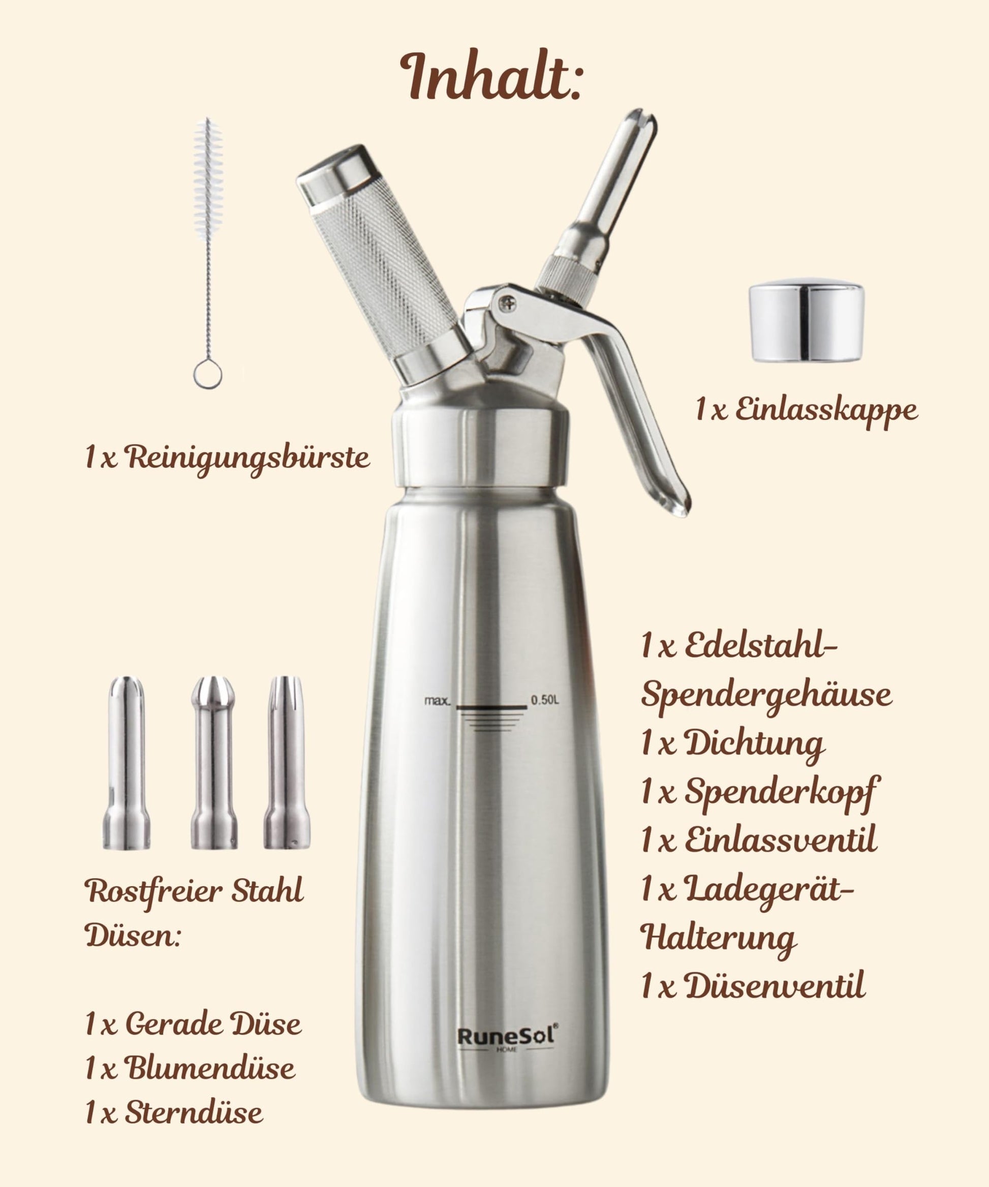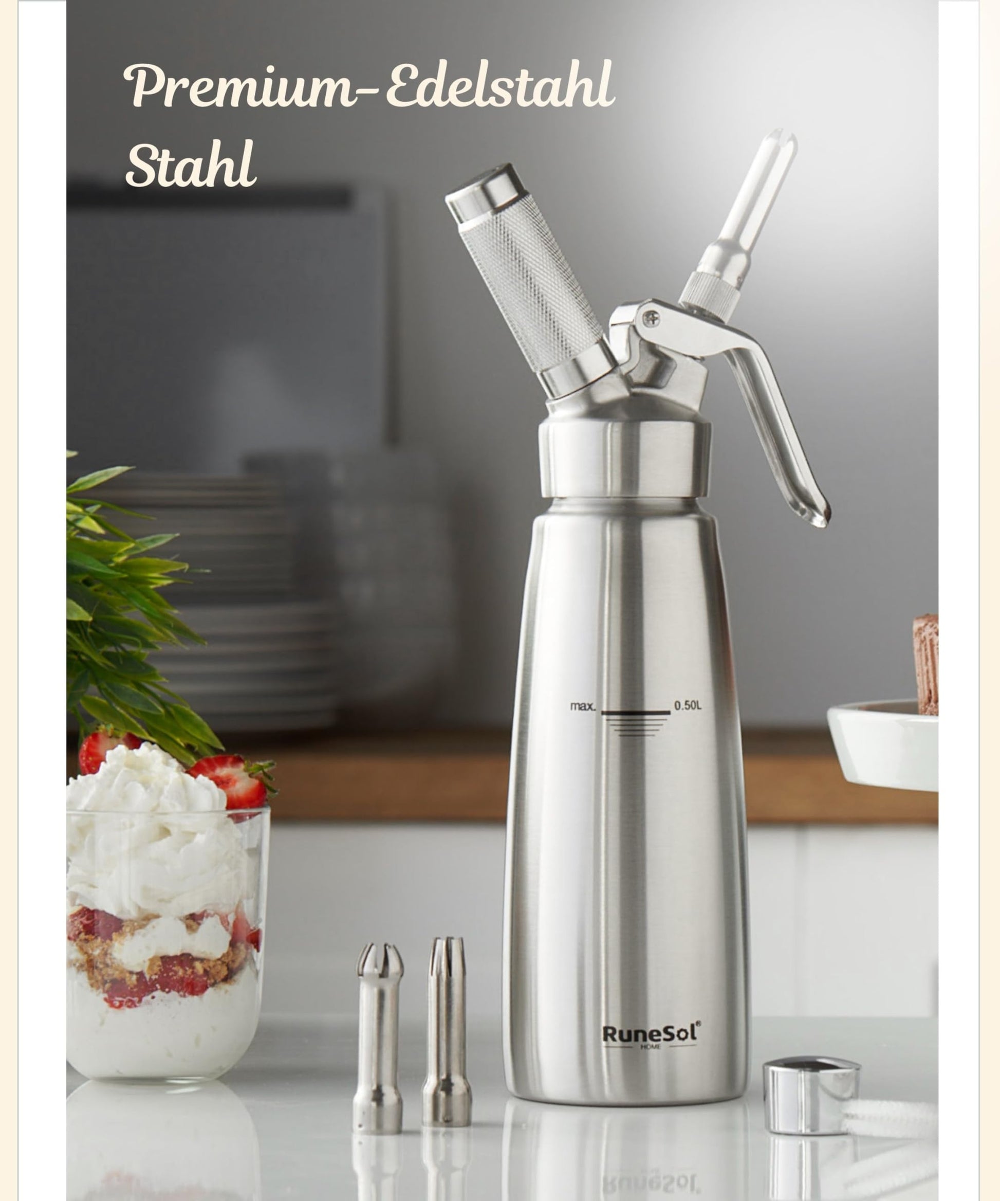★STAINLESS STEEL - Safety is very important to us! Our RuneSol cream dispenser is made of beautiful stainless steel with 3 beautiful stainless steel decorating tips for garnishing dishes.