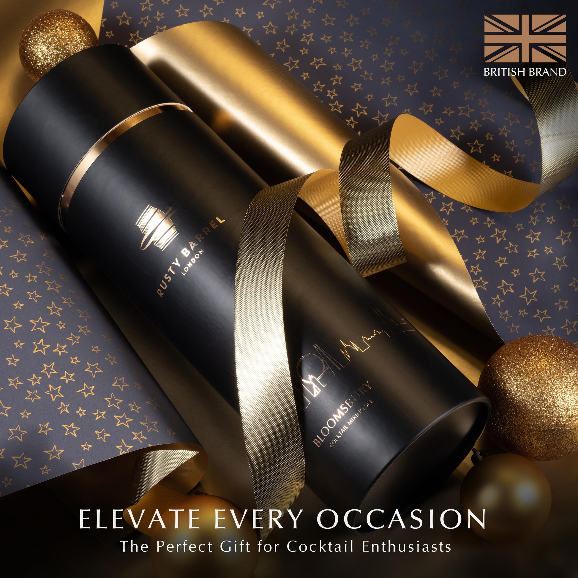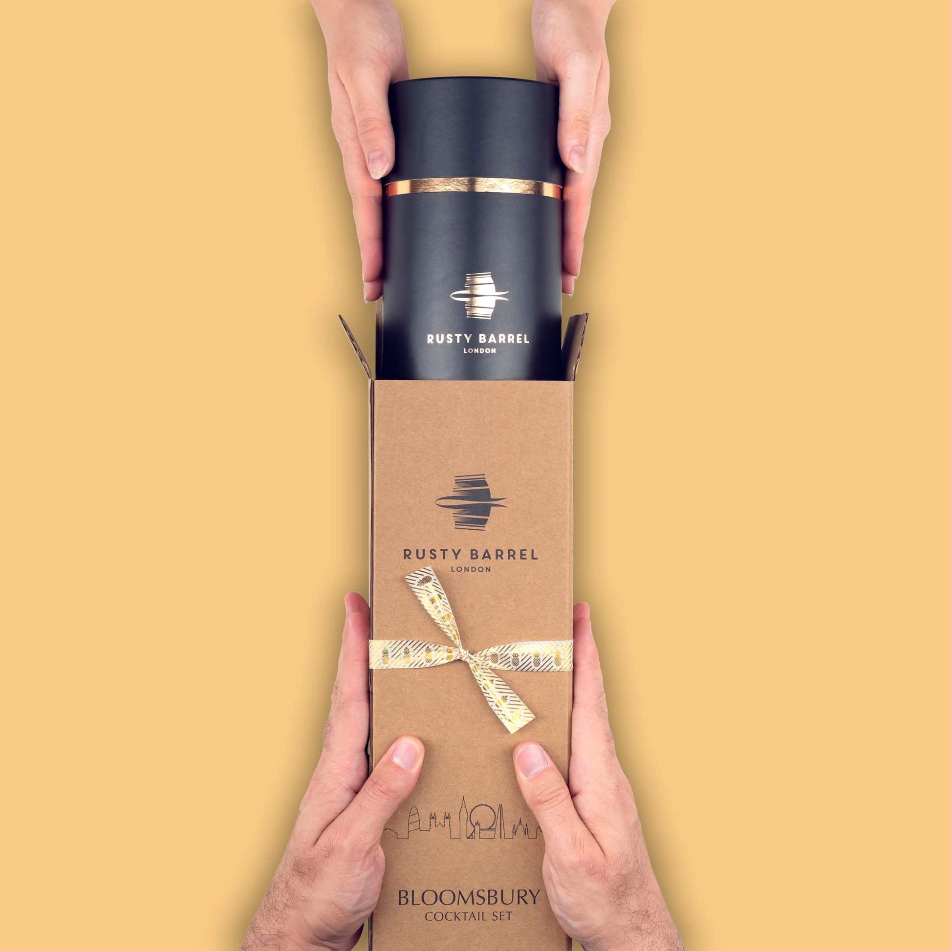 Rusty Barrel Bloomsbury Cocktail Set – Stainless Steel Cocktail Shaker Set with Jigger, Muddler, Bar Spoon & Accessories | Cocktail Mixing Set in Luxury Gift Box with Bag & Recipe Booklet