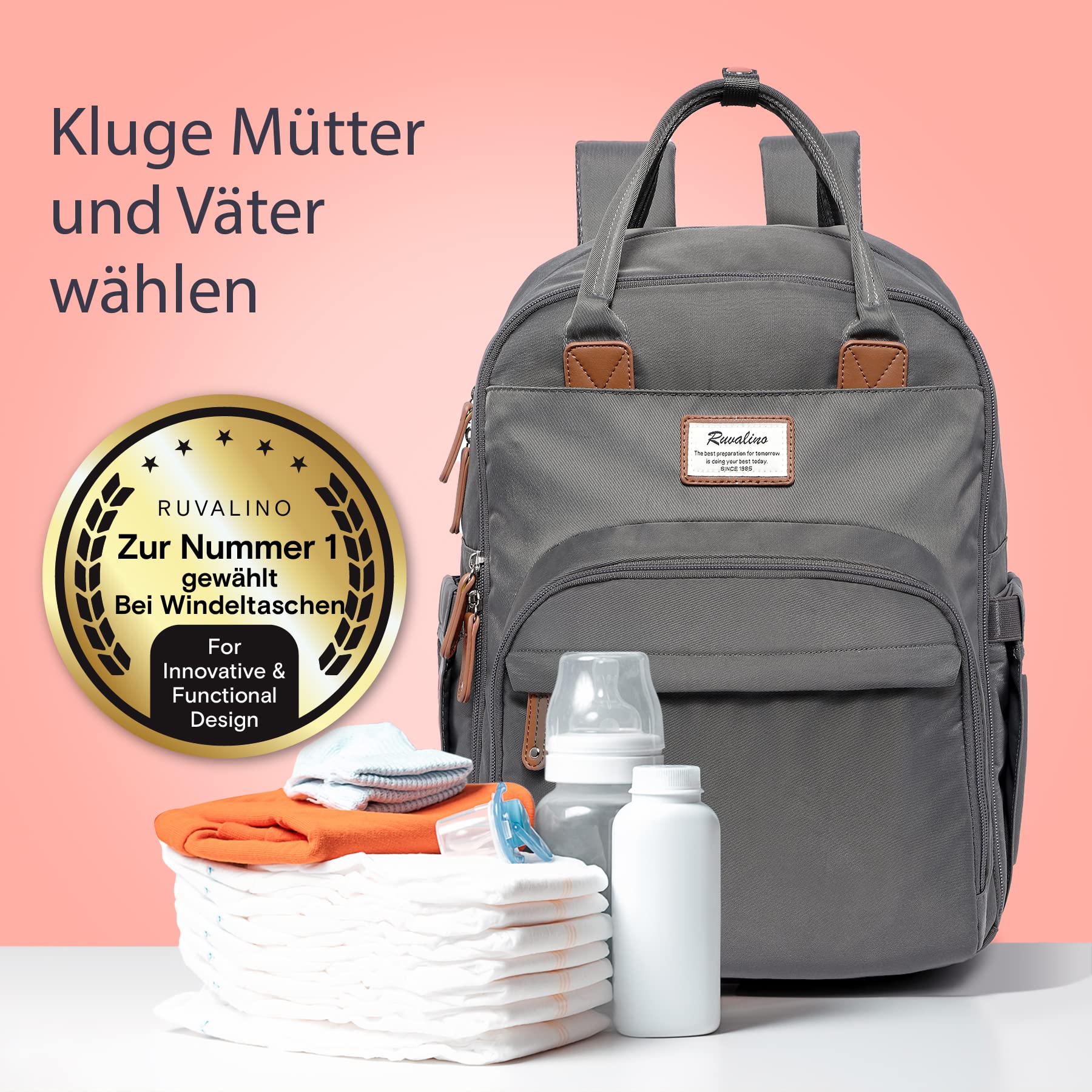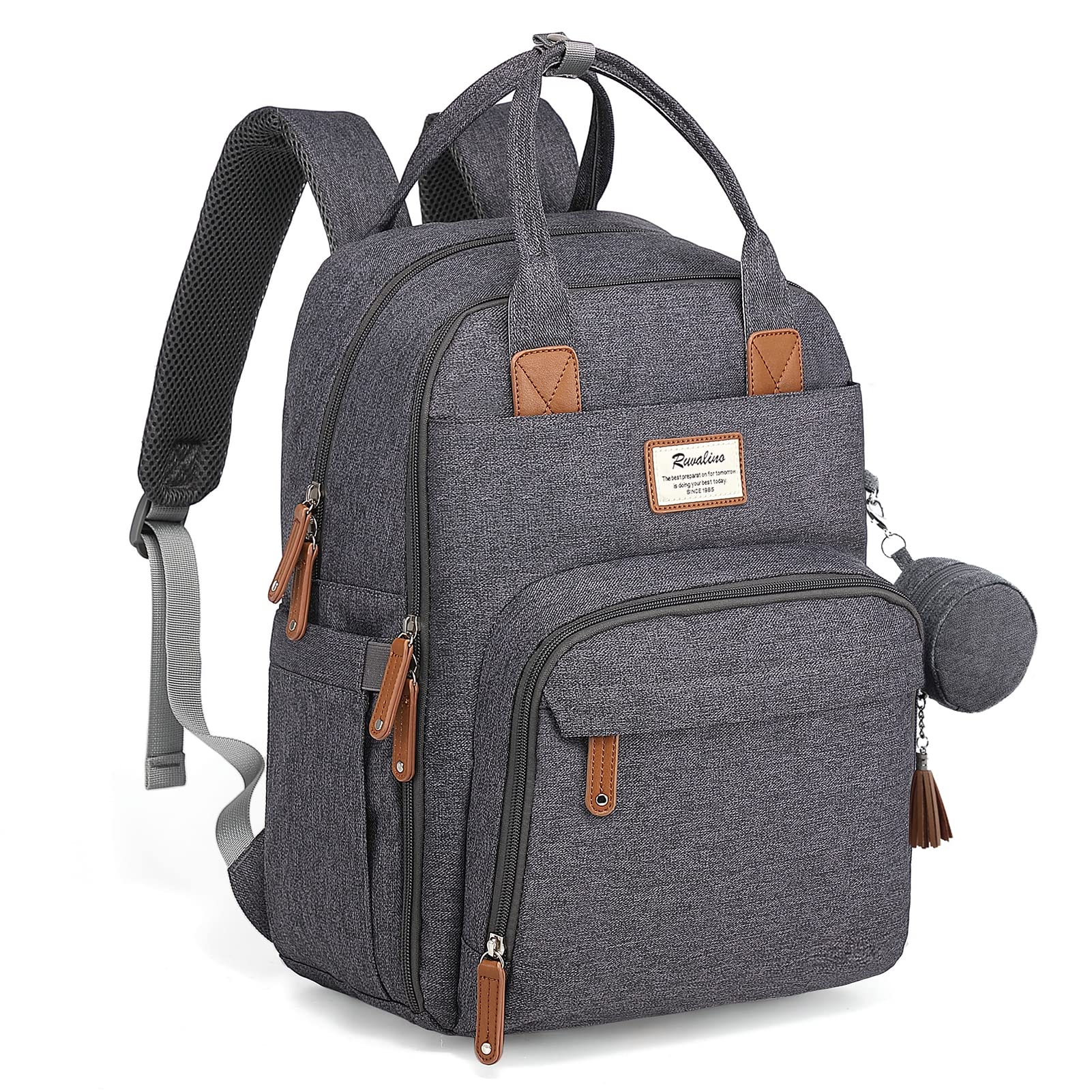 RUVALINO Baby Diaper Backpack, Multifunctional Diaper Bag Travel Backpack Large Capacity Baby Bag with Changing Pad, Waterproof Fabrics, Fits for Stroller (Dark Gray)