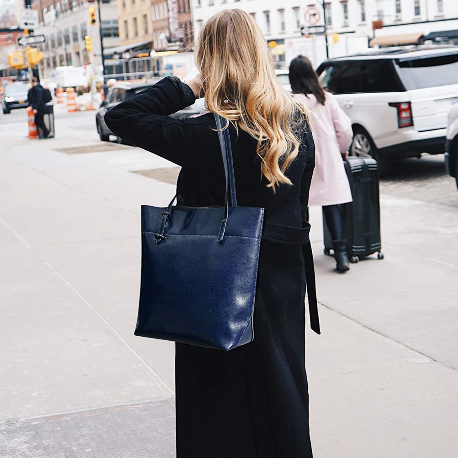 Zipper: This leather shoulder bag has a zipper on top and many zippered pockets. The large leather handbag helps you organize your life in a TIMELESS, ELEGANT style. Improved WIDE double handles on top.