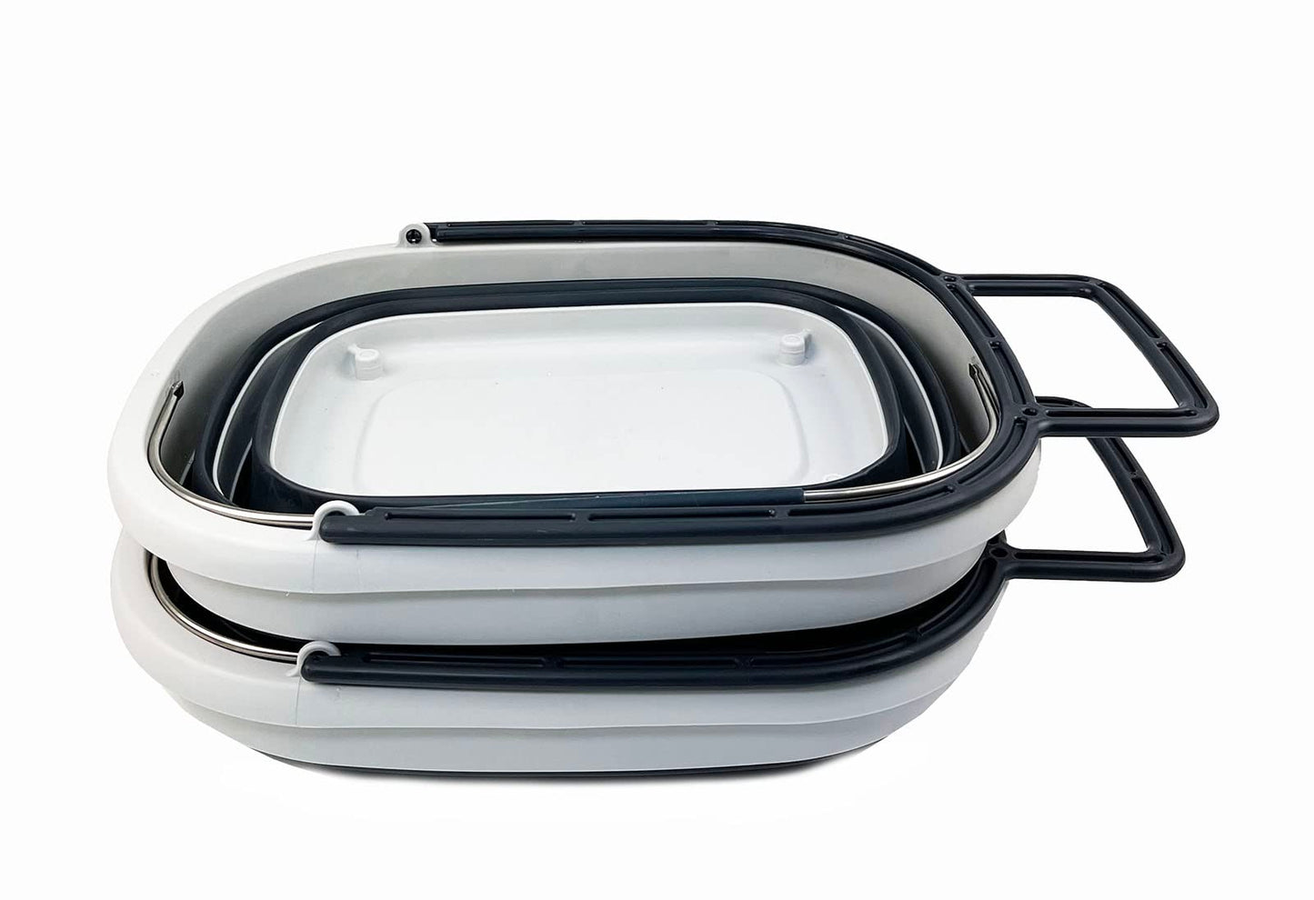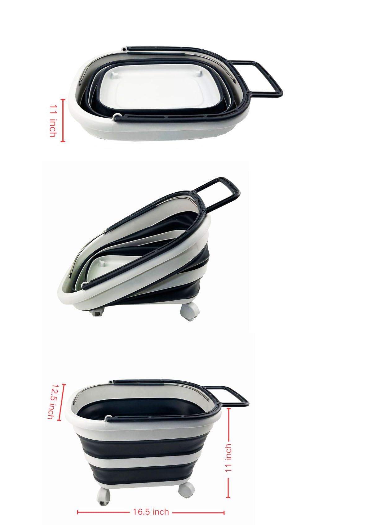 SAMMART 17L Collapsible Plastic Laundry Basket with Handle and Wheels - Foldable Pop-Up Storage Container/Organizer with Handle and Wheels - Portable Wash Tub (Gray/Charcoal Gray (2-Pack))