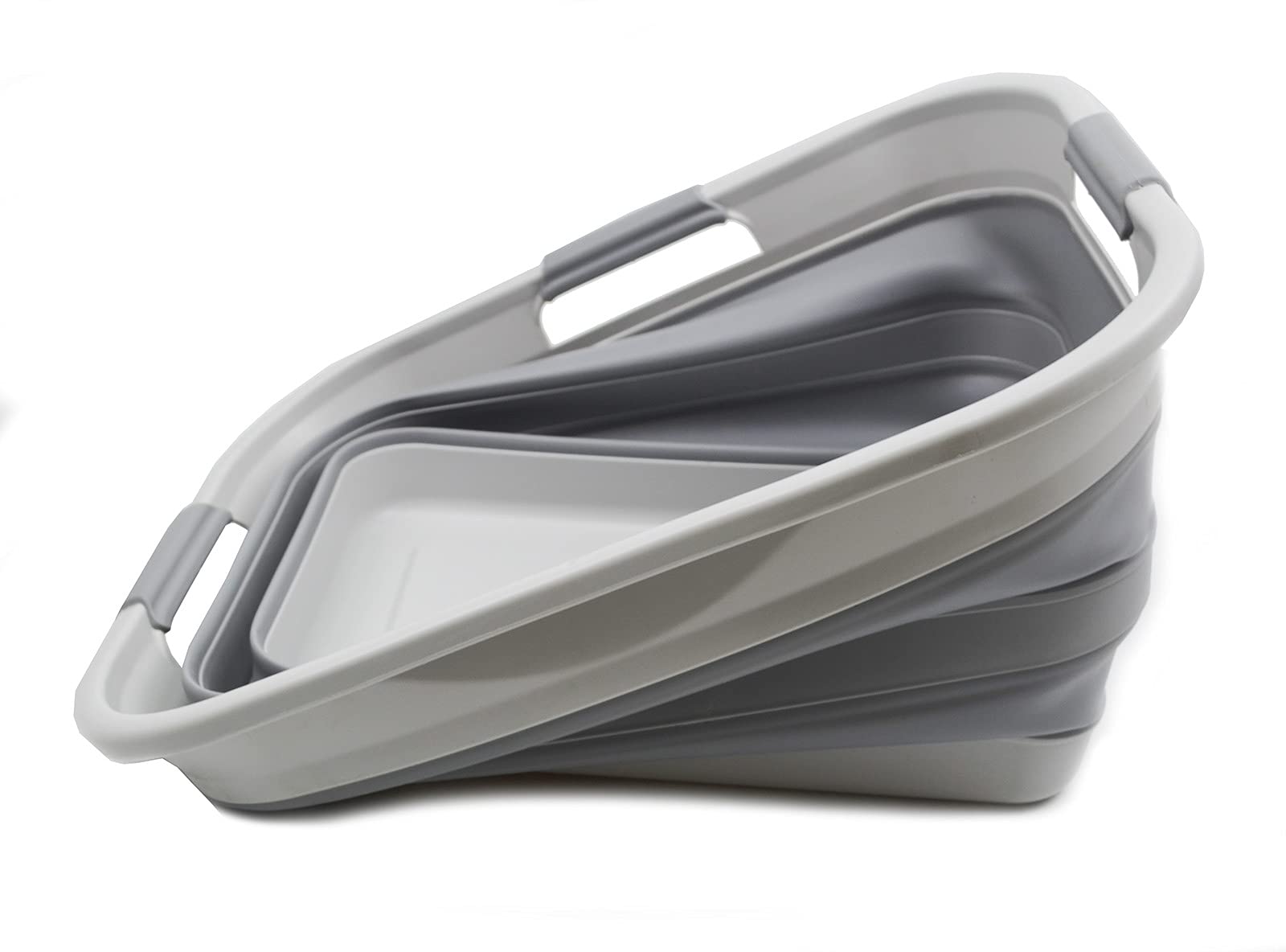 SAMMART 30L Plastic Folding Laundry Basket - Foldable Pop-Up Storage Container/Organizer - Portable Wash Tub - Space-saving Basket (1, Gray)