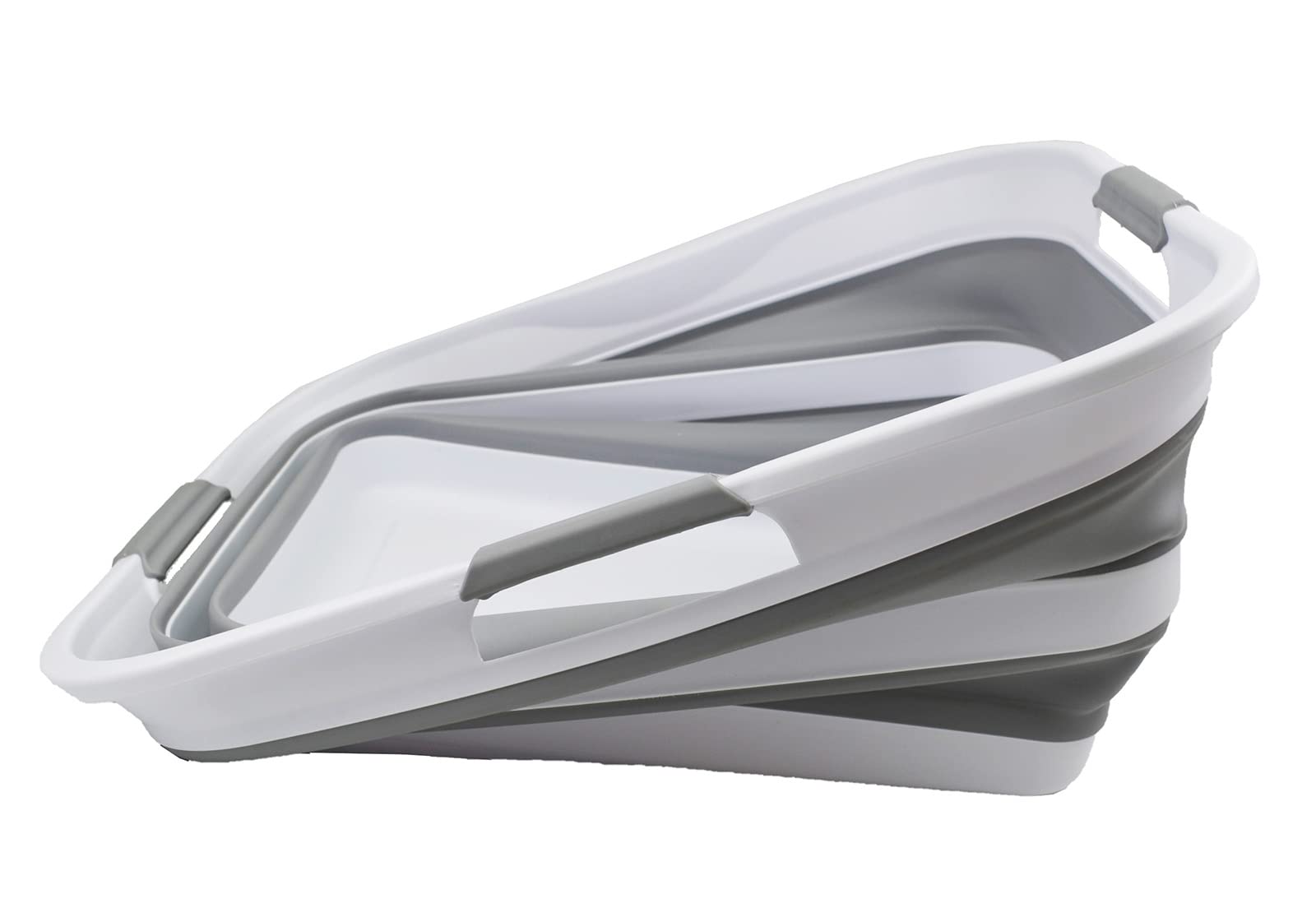 SAMMART 42L collapsible plastic laundry basket - foldable pop-up storage container/organizer - portable washing tub - space-saving basket/bin (White/Grey)