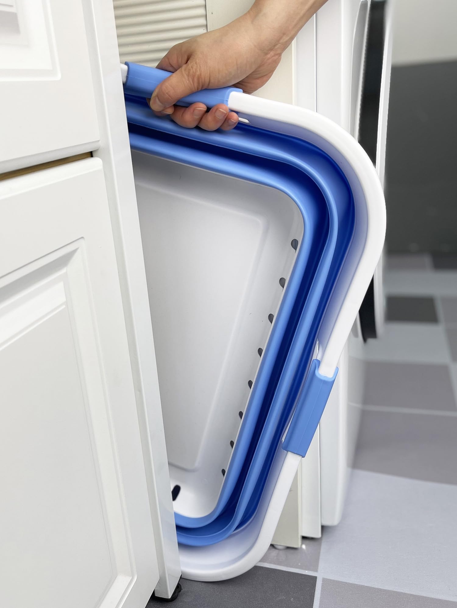 ["Patent: US 9,926,105 B2; DE 20 2014 101 047 U1; ZL 2014 1 0386688.1", "BPA free. Comfort grip for easy carrying. User-friendly with easy folding for opening during use and for space-saving on a flat surface", "Space-saving with extended size: 23 x 17.5 x 10.6 inches and a height of only 2.8 inches after folding. Save over 70% space during storage", "Perfect design with all walls and angles relatively straight and without deformation", "Perfect for laundry and storage containers for toys, clothes, and in your car trunk"]
