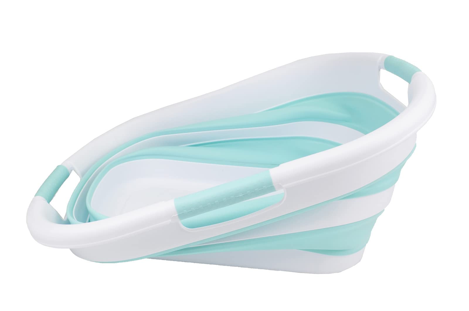 SAMMART foldable plastic laundry basket, 40L, collapsible pop-up storage container/organizer - portable wash tub - space-saving laundry hamper (1, White/Sea Green)