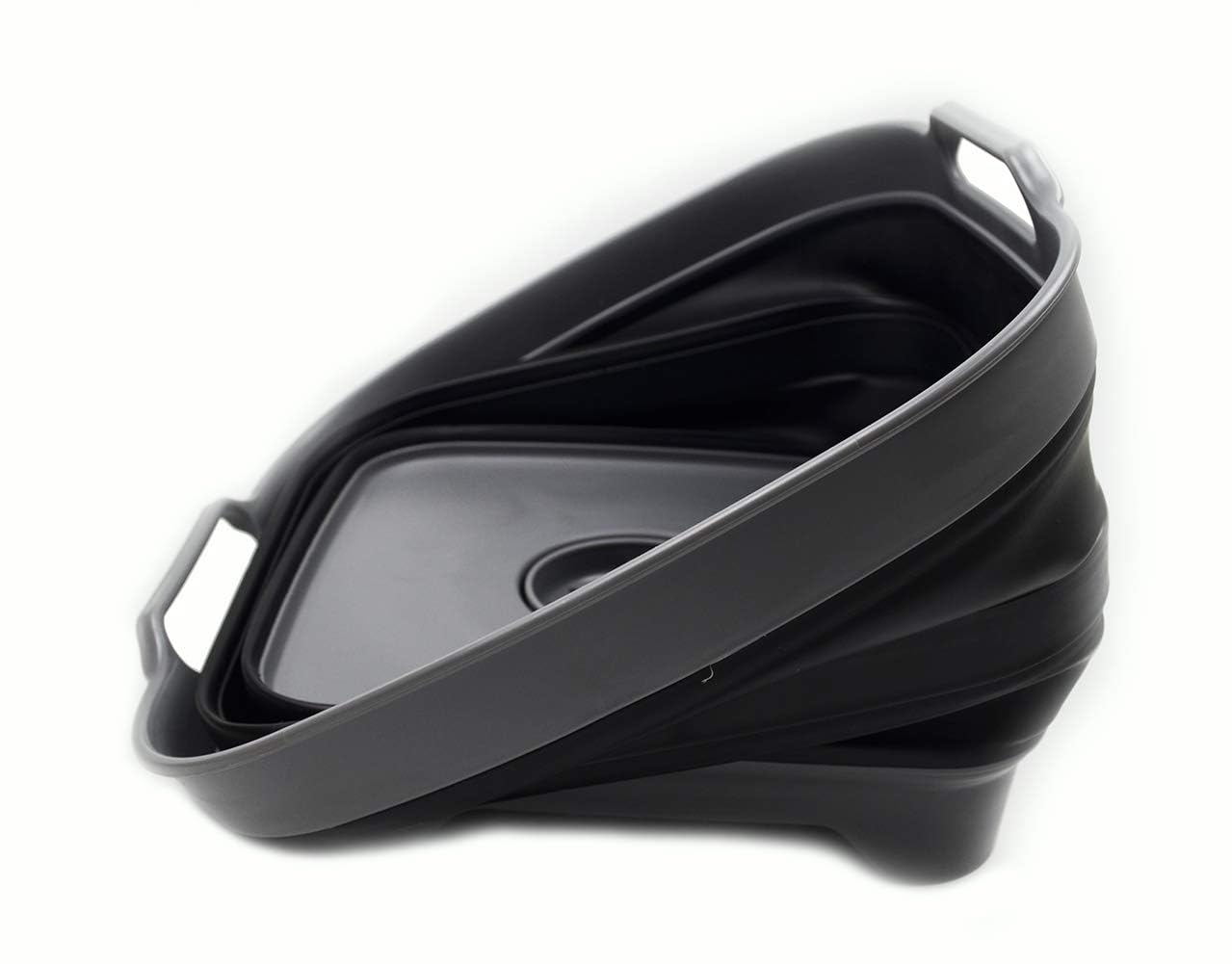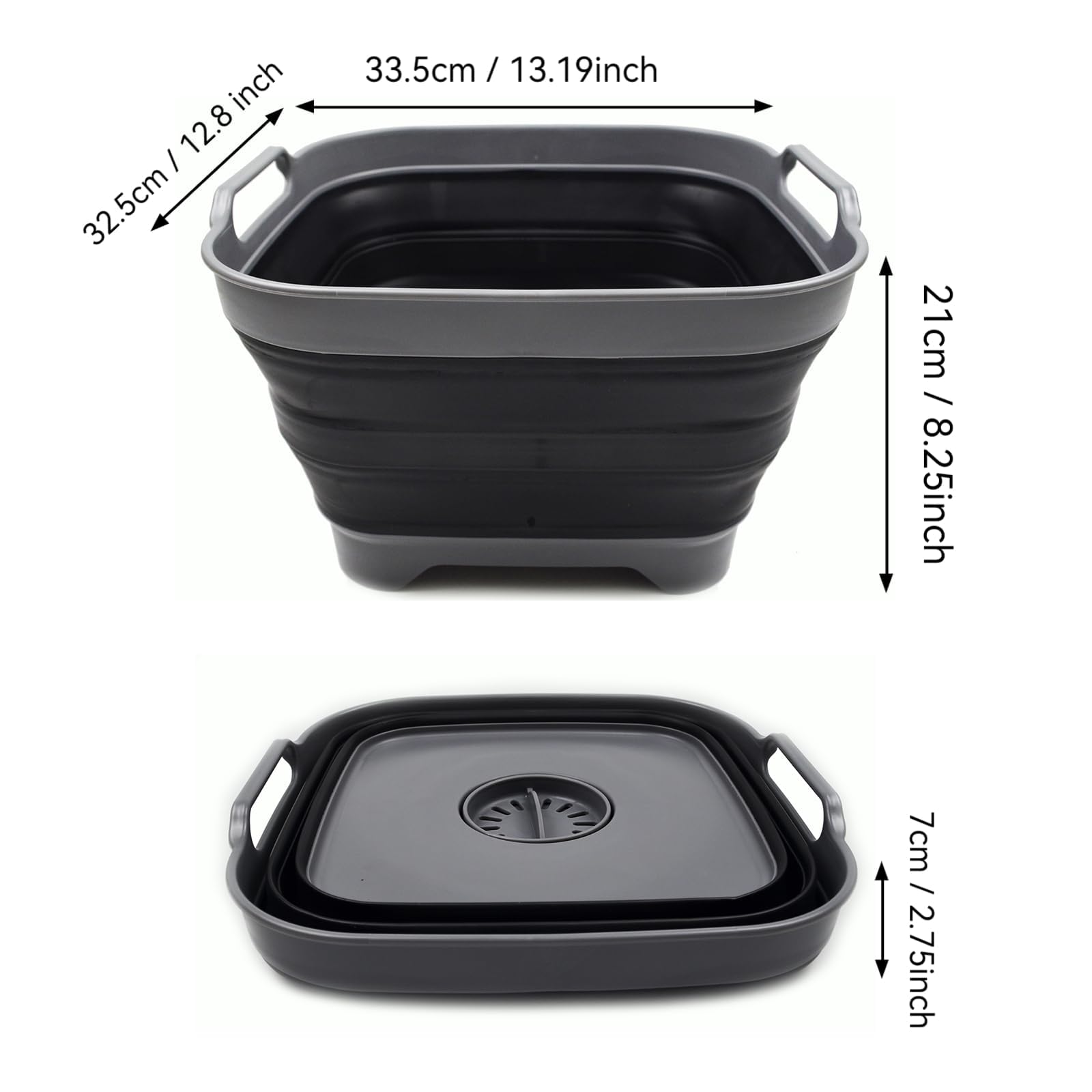 SAMMART TPE and Polypropylene, 10 liters collapsible wash basin with drain plug - Portable dishwashing tub - Space-saving kitchen storage compartment (Gray/Black, 1)