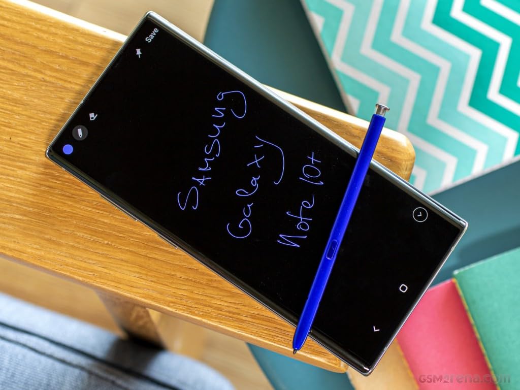 ["Samsung Galaxy Note 10+ Plus 4G 256/512 GB storage, 12 GB RAM, Dual-SIM, German version", "Pixel by pixel brilliant: The frameless Infinity-O Display (6.8 inches) with Dynamic AMOLED technology and HDR10+ impresses with detailed and true-to-life images", "Storage and performance like a laptop: 12 GB RAM for intelligent multitasking and up to 512 GB internal storage, expandable by up to 1 TB with a microSD card", "Plenty of power for long days: The powerful 4,300 mAh battery with intelligent battery management lasts even when the day runs late", "A tip for high security: The in-display ultrasonic fingerprint scanner protects data from unauthorized access", "A versatile powerhouse: The S Pen with Bluetooth functionality writes, draws, and controls many important functions with intuitive gestures", "Description of the camera: Front"]