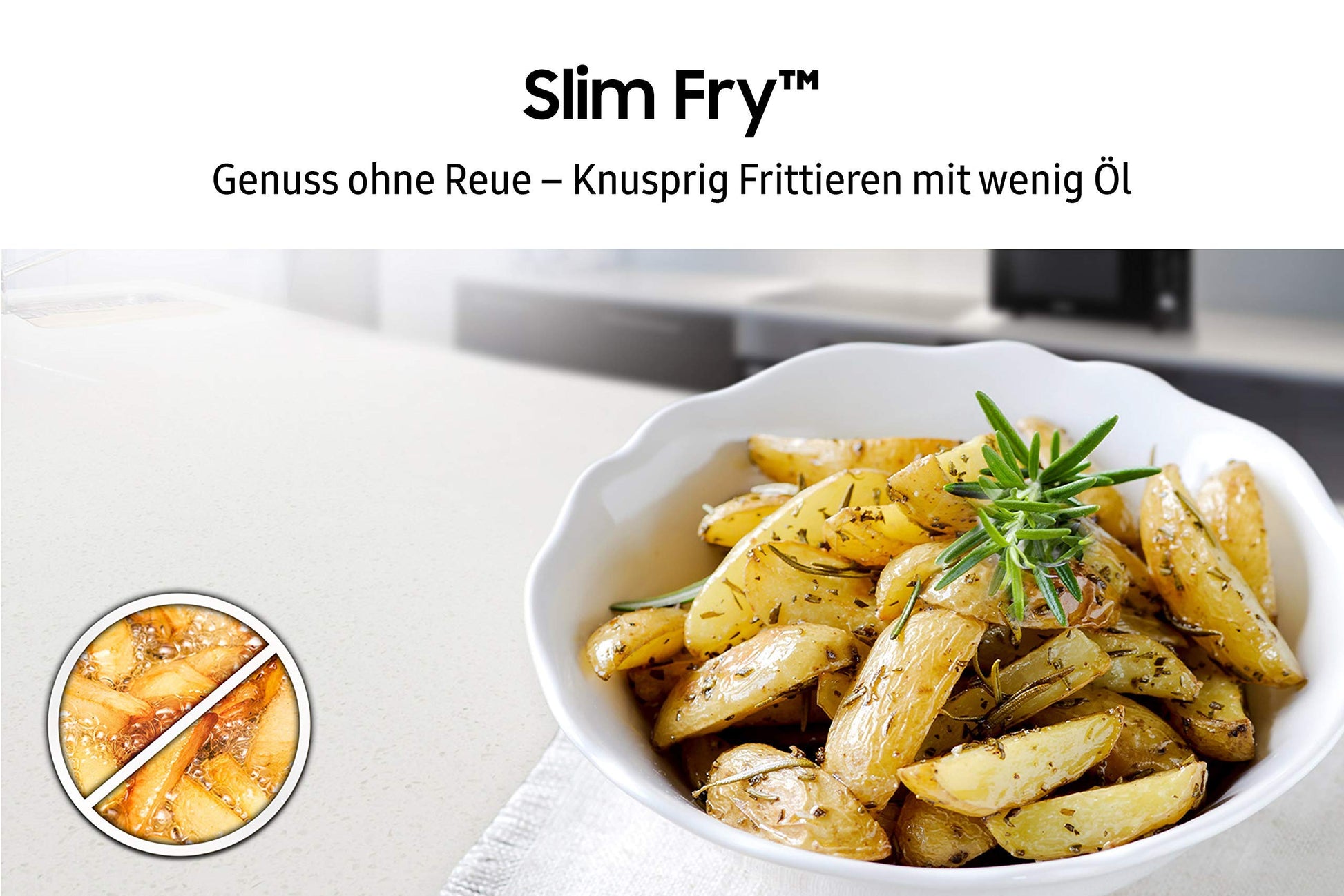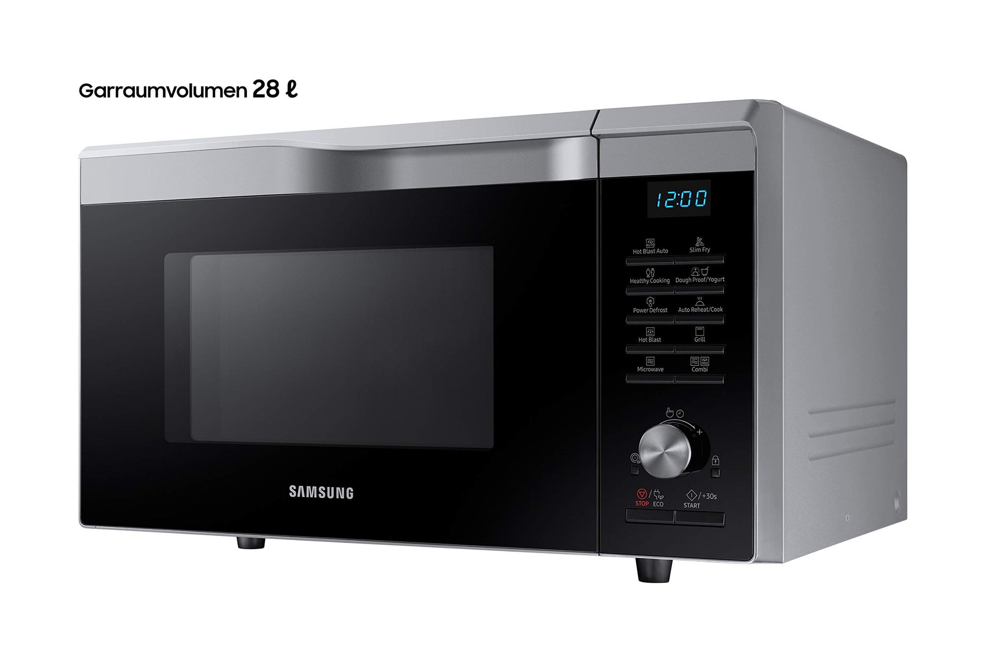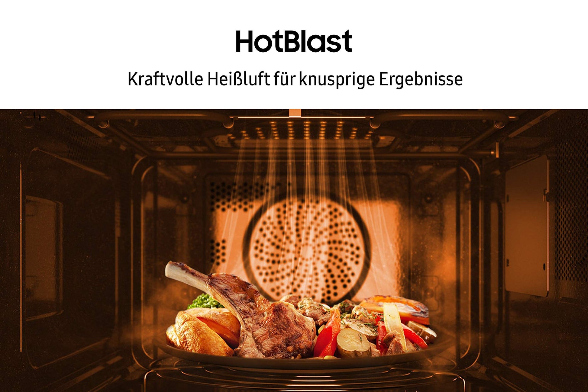["Powerful hot air is blown directly onto the food through many air holes, resulting in evenly crispy outside and juicy inside. Thanks to HotBlast technology, up to 50% faster results can be achieved compared to similar convection microwaves. For example, a crispy, fresh pizza can be done in just 13 minutes - no preheating required.","Samsung's Slim-Fry function fries food using a combination of microwave, grill, and hot air functions. This advanced process, together with the Crusty Plate, achieves optimal frying results with almost no oil. You can see and taste the difference!","The Power Defrost function helps thaw frozen foods quickly and evenly. Soggy foods are a thing of the past. Thawed foods are presented crispy-fresh, so you and your family can enjoy delicious meals whenever you want.","The variety of automatic programs makes preparing your favorite dishes even easier and more convenient. The automatic programs are optimized for fresh and raw foods, so you can be sure to choose the most gentle and healthy cooking method each time.","Quickly cleaned: The interior walls of the microwave are made of a smooth ceramic surface that is easy to clean without discoloring over time. In addition, the durable interior is scratch and rust-resistant.","Even when not in use, microwaves consume electricity. With the Eco Mode setting, the power consumption of Samsung microwaves can be reduced. This can help protect the environment and your wallet.","What do you do best with pizza leftovers or leftover chicken nuggets? With the Crusty Plate, you can evenly and crisply brown food leftovers or frozen products - all without oil."]