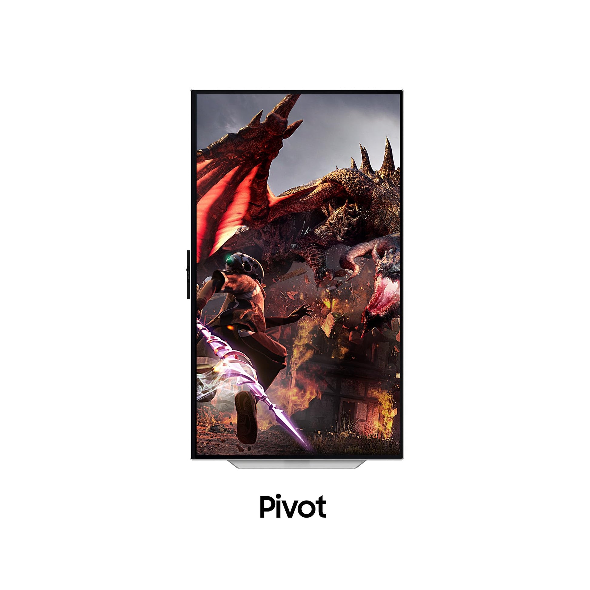 "Stunning picture quality: Gaming monitor with OLED panel with 4K resolution (3,840 x 2,160 pixels), Wide viewing angle of 178° and rapid action with Nvidia G-Sync and AMD FreeSync Premium Pro. Strong AI performance: NQ8 AI Gen3 processor for upscaling low resolutions to nearly 4K, Deep black and dark colors, Wide color gamut with 250 Nits brightness. 240 Hz refresh rate and a response time of only 0.03 ms for stunning gameplay and smooth playback of your games without stuttering or distortion. Relaxed eyes with Eye Saver mode and Flicker Free technology for less blue light emissions and screen flicker, OLED Glare Free for reduced reflections, Ergonomic due to height adjustment. Delivery contents: 1x Samsung Odyssey G80SD OLED gaming monitor LS32DG800SUXEN, 32 inches, 1.5m power cable, 1x DisplayPort cable, 1x HDMI cable, remote control"
