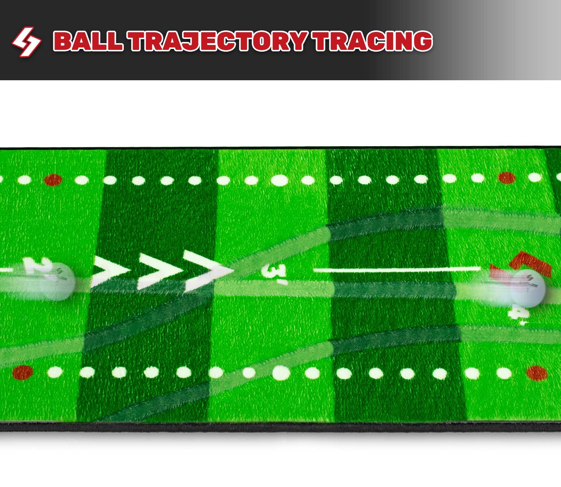 ["🏌🏻【BALLPATH TRACKING】The ball path is left behind after your putt on the putting mat, giving you immediate visual feedback.","🏌🏻【GREEN SIMULATION WITH DOUBLE SPEED】You can get different speeds by brushing the mat in different directions. Brush over the arrows to putt at MEDIUM SPEED and over the arrows to putt at SLOW SPEED.","🏌🏻【PUTTER HOLDING CORRECTION】The reflective surface ensures correct alignment, with your eyes above the ball and your shoulders aligned to the target.","🏌🏻【GREEN PISTE SIMULATION】Adjust your putting track by moving the foam blocks.","🕿【CUSTOMER SERVICE】We offer a 12-month warranty on mat breakage replacement and 6 months of free replacement on other parts. If you have any problems, feel free to contact us. We guarantee a satisfactory solution."]