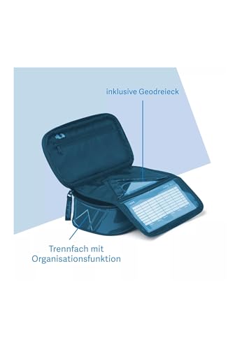 Contents: pencil case with protractor, schedule, zipper compartment, colorful rubber bands for pens and more. Dimensions: (W/D/H) 22 x 10 x 6 cm.