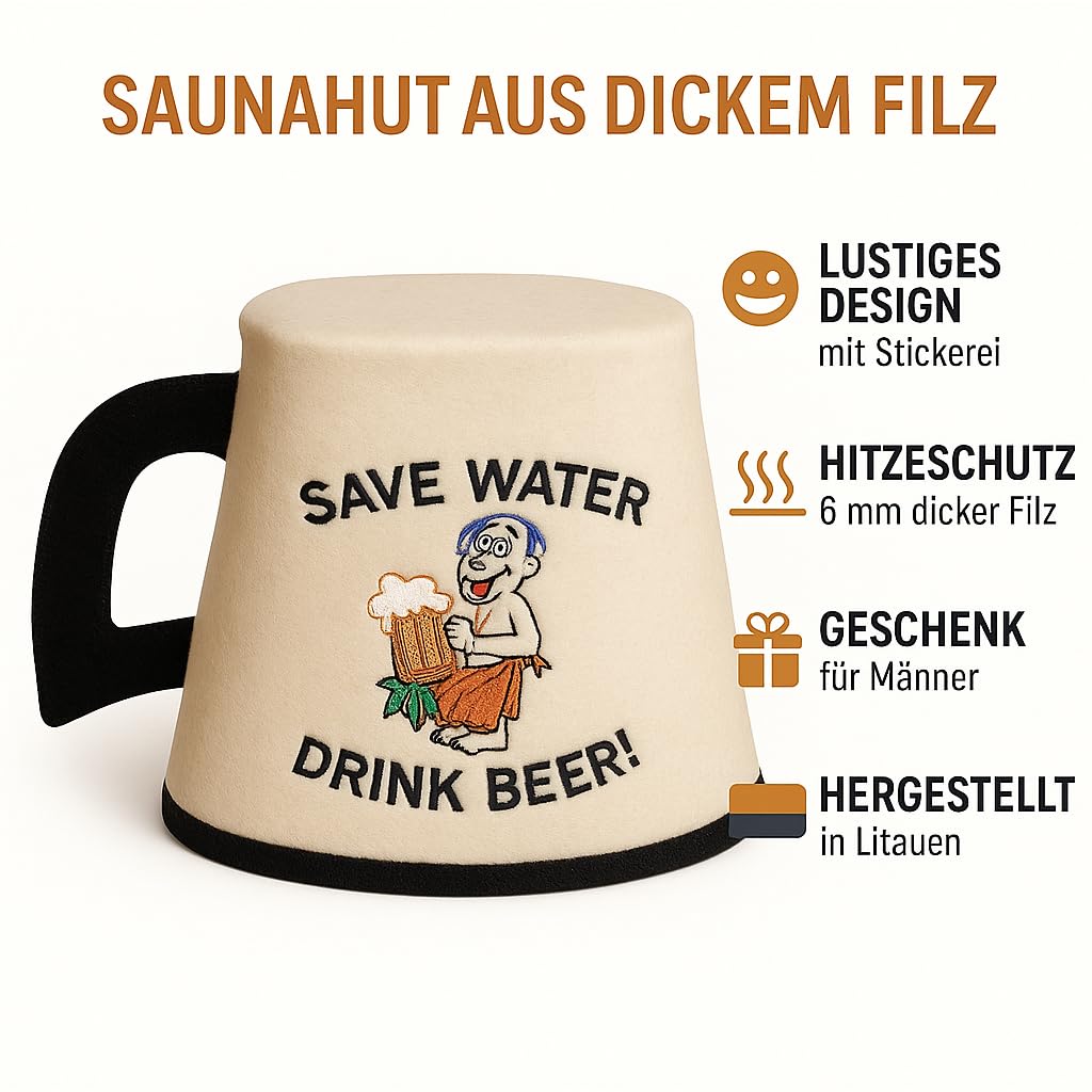 - "πΊ Funny design: With "Save Water Drink Beer" embroidery - perfect gag for sauna, infusion or beer lovers"