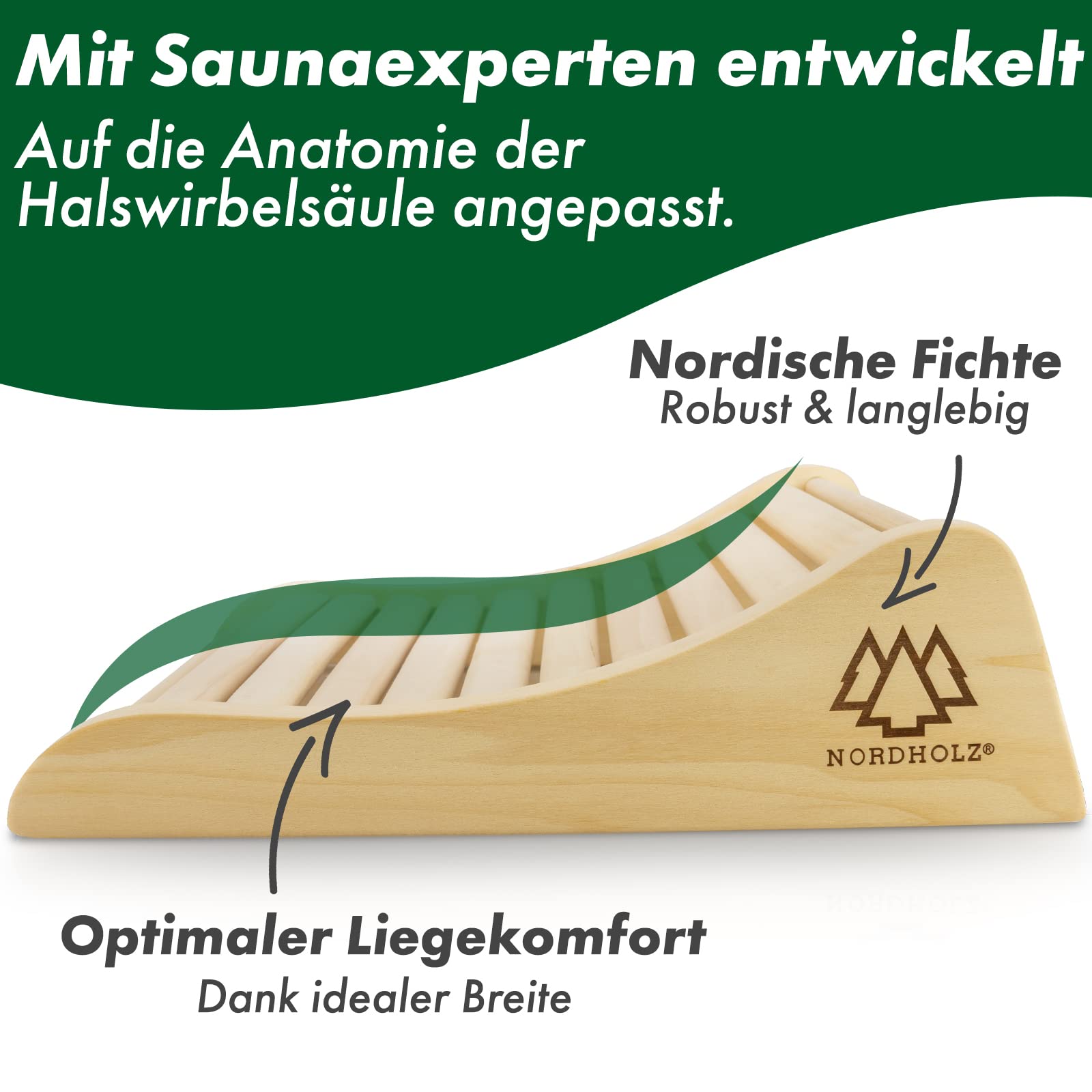 Sauna headrest wood 2-piece set - 37x33cm ideal width for optimal lying comfort - Sauna headrest ergonomically handcrafted from durable Scandinavian pine wood - High-quality sauna accessory