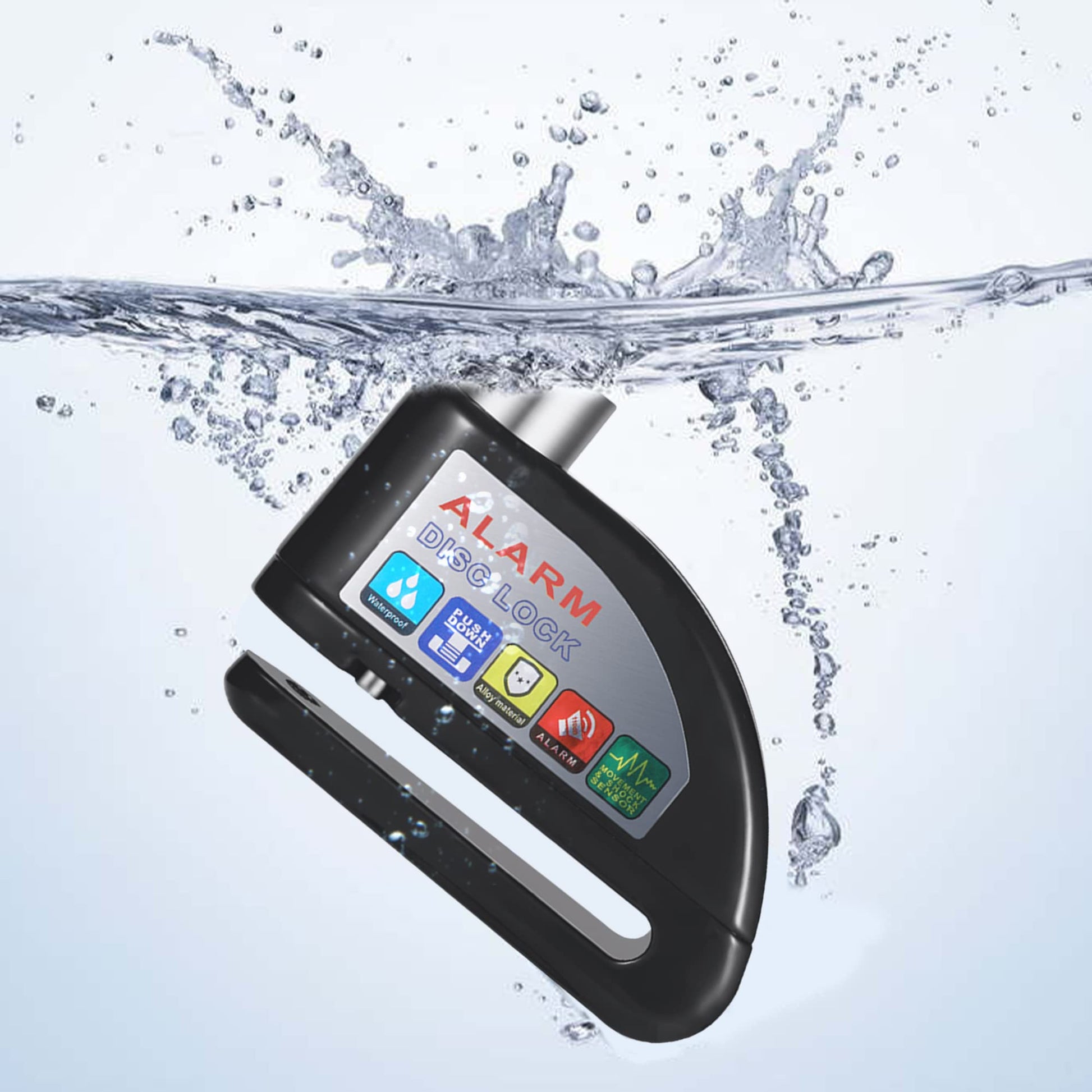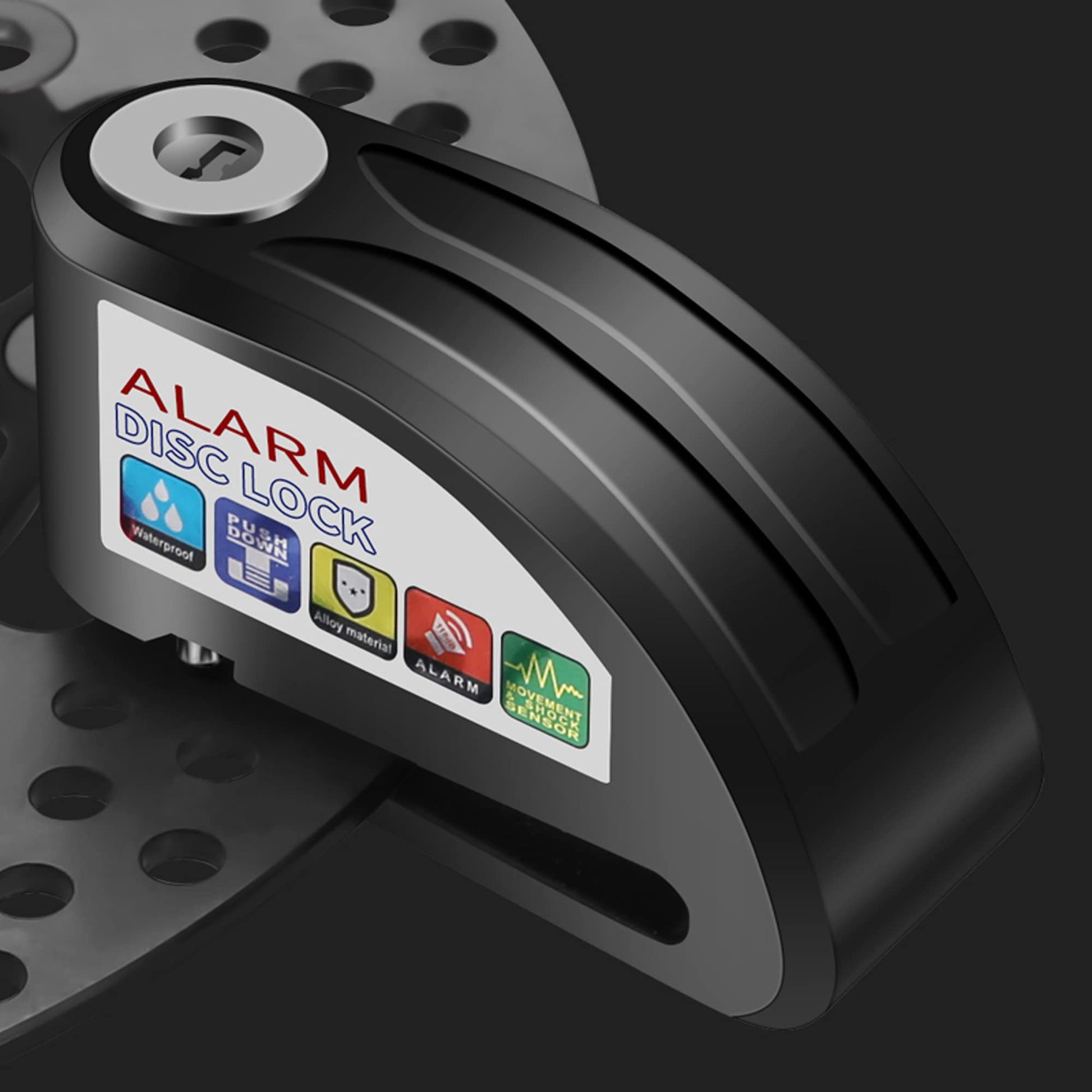 SaxonyRAD Disc Lock Motorcycle Alarm 110dB, Waterproof Motorcycle Lock unlocked by pressing without key, Scooter lock with integrated stainless steel lock for motorcycle, bicycle, scooter.