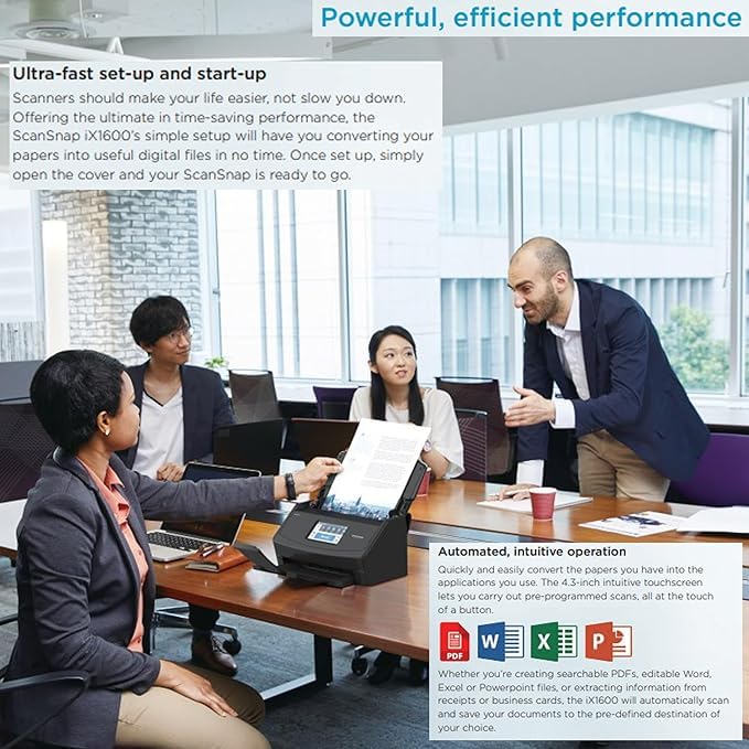 ScanSnap iX1600 Desktop Document Scanner Black - 5 GHz - Duplex, ADF, A4, WLAN, Touchscreen, USB 3.2