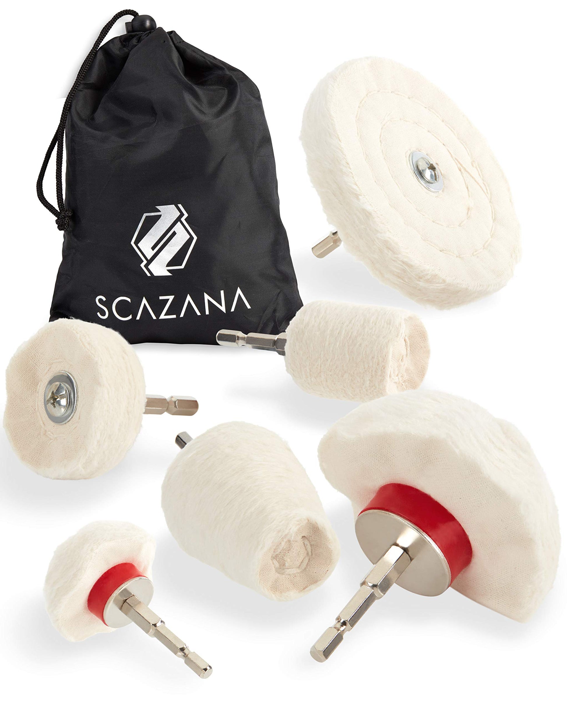 SCAZANA® polish attachment for cordless drill - Includes high-quality hex shank - Gentle polishing pads for drill machine - 6-piece polishing attachment with convenient storage bag.
