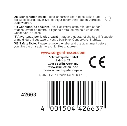 ["High-quality plush, 26 cm, More elastic material for the cuddle effect, In 3D look","Loyal as gold, we are always there when worries and troubles really pinch.","We were trained at the prestigious Academy for Worry Eaters arts.","Hand-washable","from 0 years"]