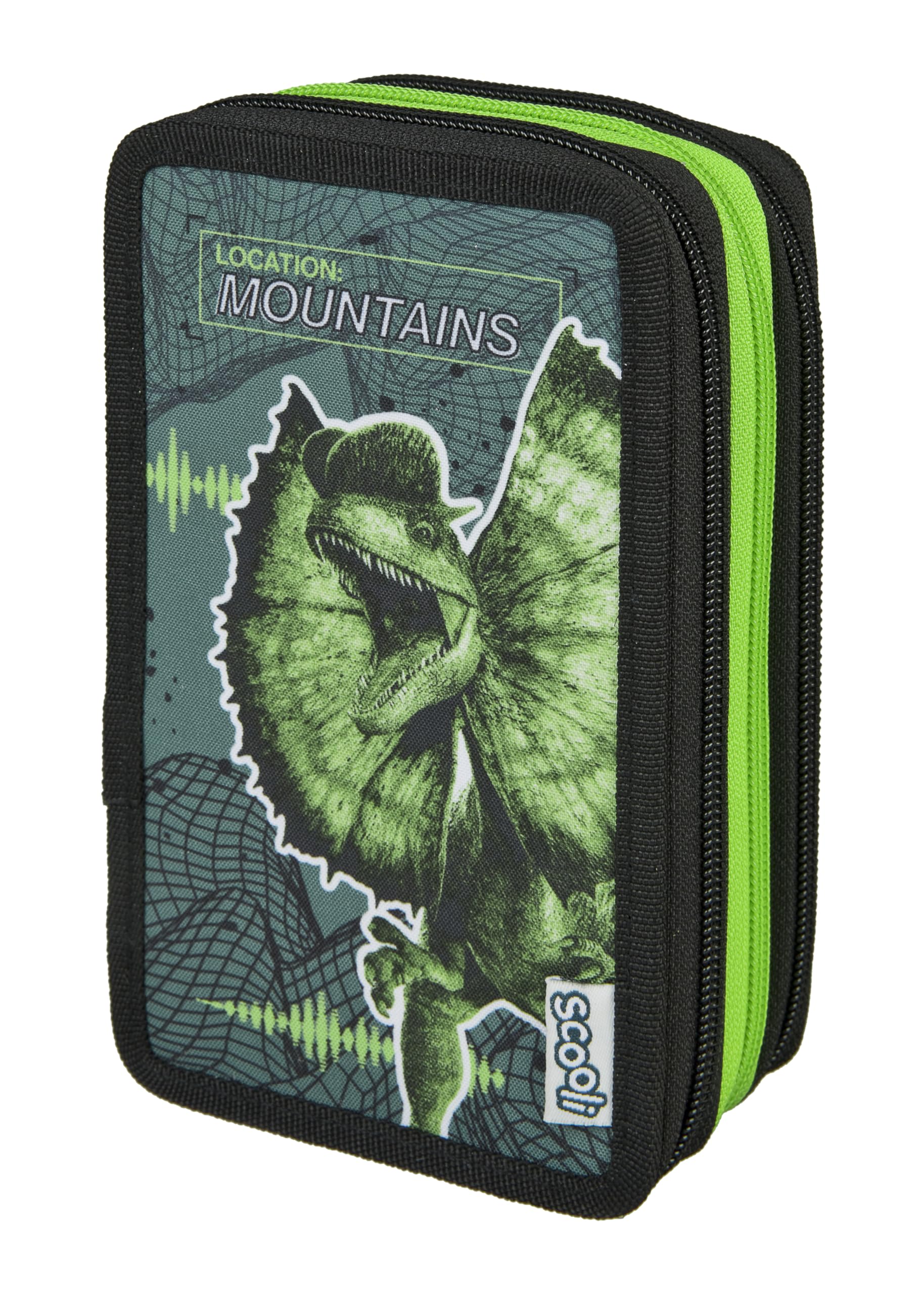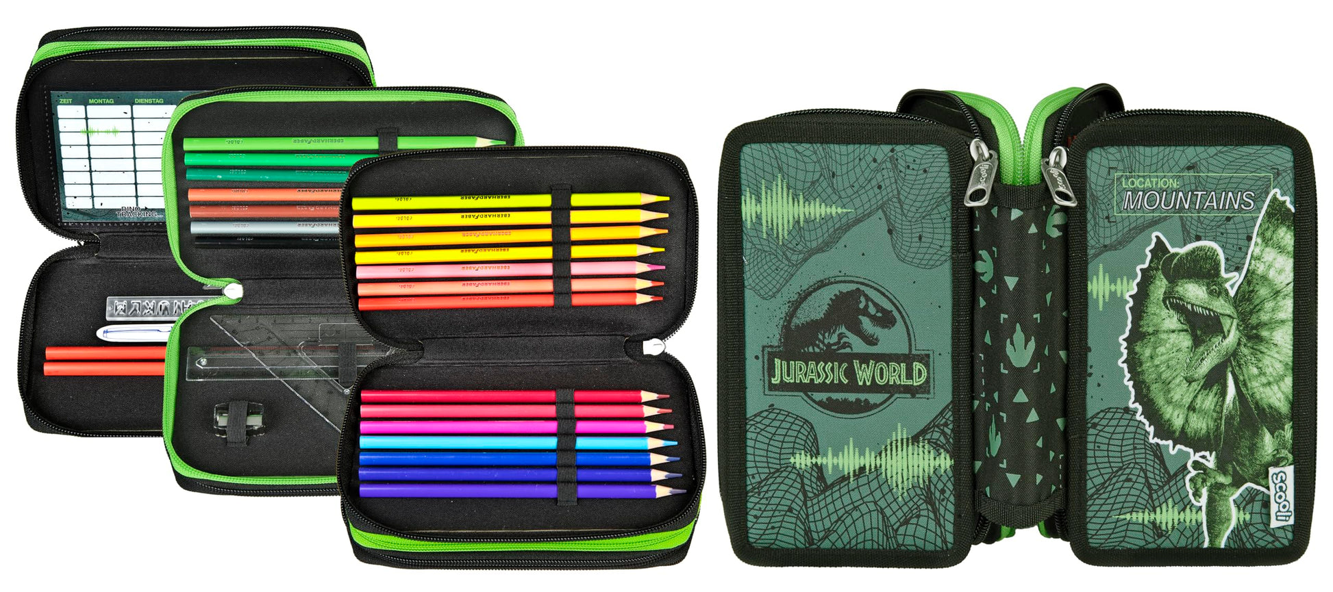 Schooli - Tripledecker student case Jurassic World - Large student case with high-quality pens - practical and functional - for school and on the go - high-quality material - for ages 6 and up