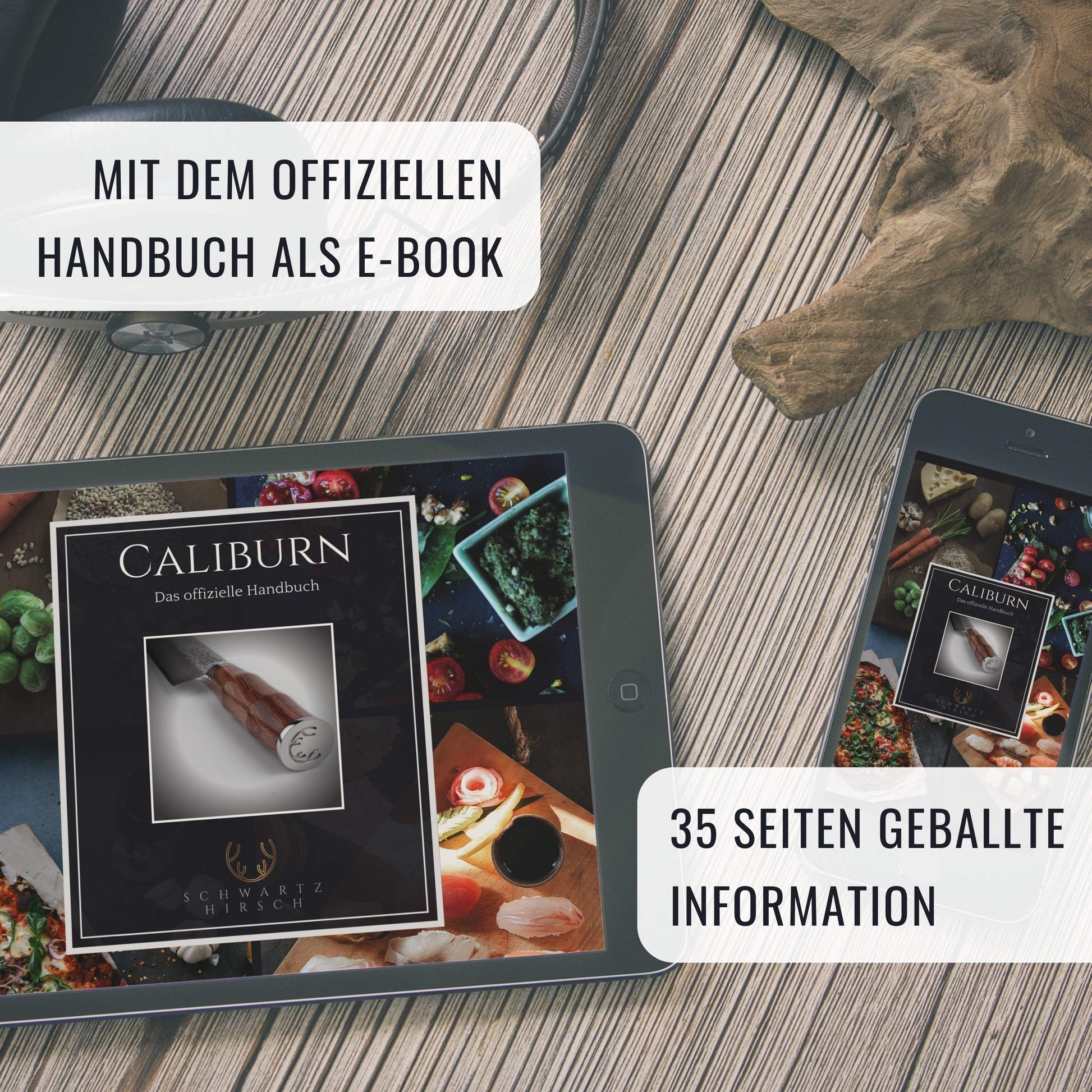 ["💡 DER KOENIG DER KLINNGEN: Deine Freunde werden staunen, wenn Du Dein handgefertigtes Caliburn aus der exklusiven Walnußtruhe holst. Es ist beinahe magisch, wie mühelos das Schneiden mit der rasiermesserscharfen Klinge von der Hand geht.", "💡 EIN WAHRER HANDSCHMEICHLER: Caliburns erlesener Echtholzgriff fühlt sich nicht nur erstklassig an. Seine innovative Ergonomie und Schwerpunktverteilung schützen Deine Hand zusätzlich vor Ermüdung.", "💡 QUALITAET, DIE EIN LEBEN HAELT: Caliburn ist auf Langlebigkeit ausgelegt. Eine einmalige Anschaffung, die Dein Kocherlebnis für immer revolutioniert. Nie wieder schlechte Qualität, nie wieder ein stumpfes Messer!", "💡 SCHENKE DAS ULTIMATIVE KOCHERLEBNIS: Caliburn ist traumhaft verpackt und wird jedem Beschenkten ein strahlendes Lächeln aufs Gesicht zaubern. Mit dem kostenlosen E-Book lernt jeder in Windeseile den sicheren Umgang mit Caliburn.", "💡 100%-ZUFRIEDENHEITSGARANTIE: Deine Leidenschaft zum Kochen liegt uns am Herzen! Solltest Du ein Problem haben, erhältst Du innerhalb von 24h eine Lösung. Sagt dir unsere Lösung nicht zu, erhältst Du bis zu 30 Tage nach Kauf Dein Geld zurück. Ohne „Wenn“ und „Aber“."]