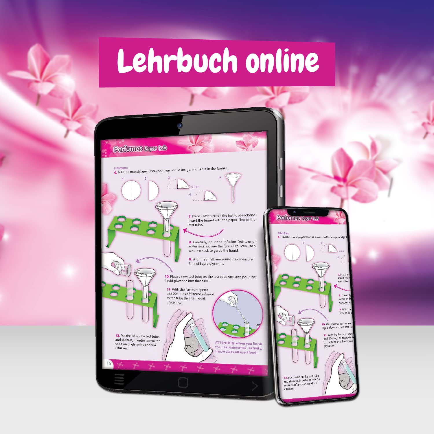 "【Online Textbook for Kids 7 Languages】 This perfume making science kit includes an online textbook in 7 languages (English, German, French, Dutch, Italian, Spanish, Portuguese) that guides you through the various experiments of this science and chemistry laboratory.",