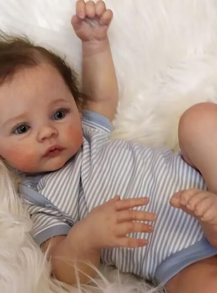 ["1.Dolls: 20 inches 50 cm (Newborn size) The actual doll can wear newborn clothes.","2.Weight: 1.2 kg (2.64 pounds) With soft silicone head and limbs and a thick fabric body for a real baby feel.","3.The arms and legs can move up and down and the baby can sit and lie down, can't cry, laugh, or eat.","4.Package: Dolls, clothes, bottle, pacifier, birth certificate, color box.","5.baby dolls: She can be a playmate for children, but also develop their sense of responsibility."]