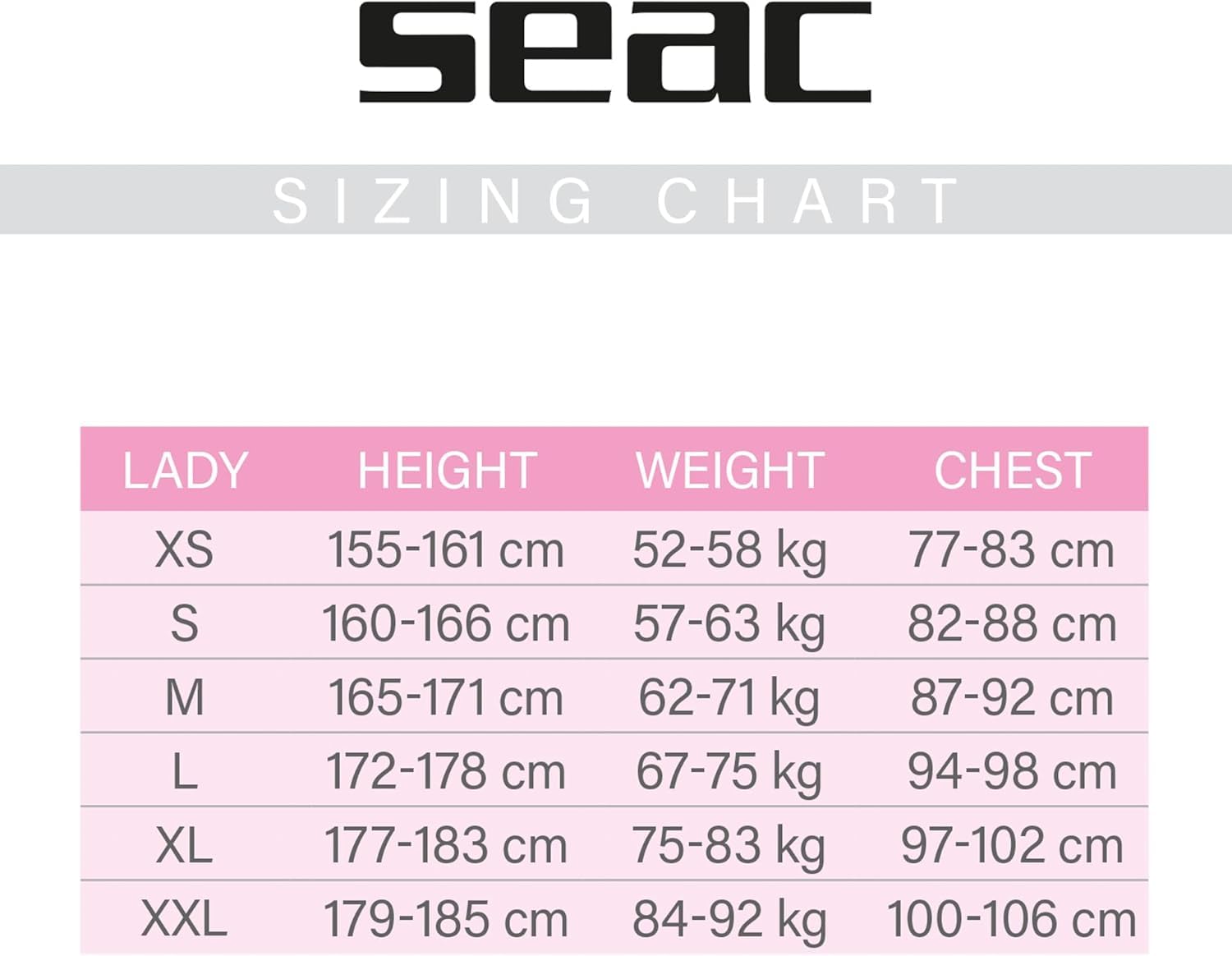 ["FRONT ZIPPER: The Seac Ciao wetsuit features a convenient front zipper along the entire torso for easy dressing","FLAT SEAMS: The Seac Ciao wetsuit is suitable for even the most sensitive skin thanks to its flat seams","2.5 MM THICK NEOPRENE: The short Seac Ciao wetsuit is ideal for snorkeling, swimming, and diving in warm waters (77°-86°F)","GOOD FIT: The short Seac Ciao wetsuit is available in 6 sizes from XS to XXL. The provided chart assists in choosing the best size","Seac QUALITY: The quality of the Seac Ciao wetsuit for kids is guaranteed by Seacsub SpA, a company that has been a leader in the Italian diving industry since 1971"]