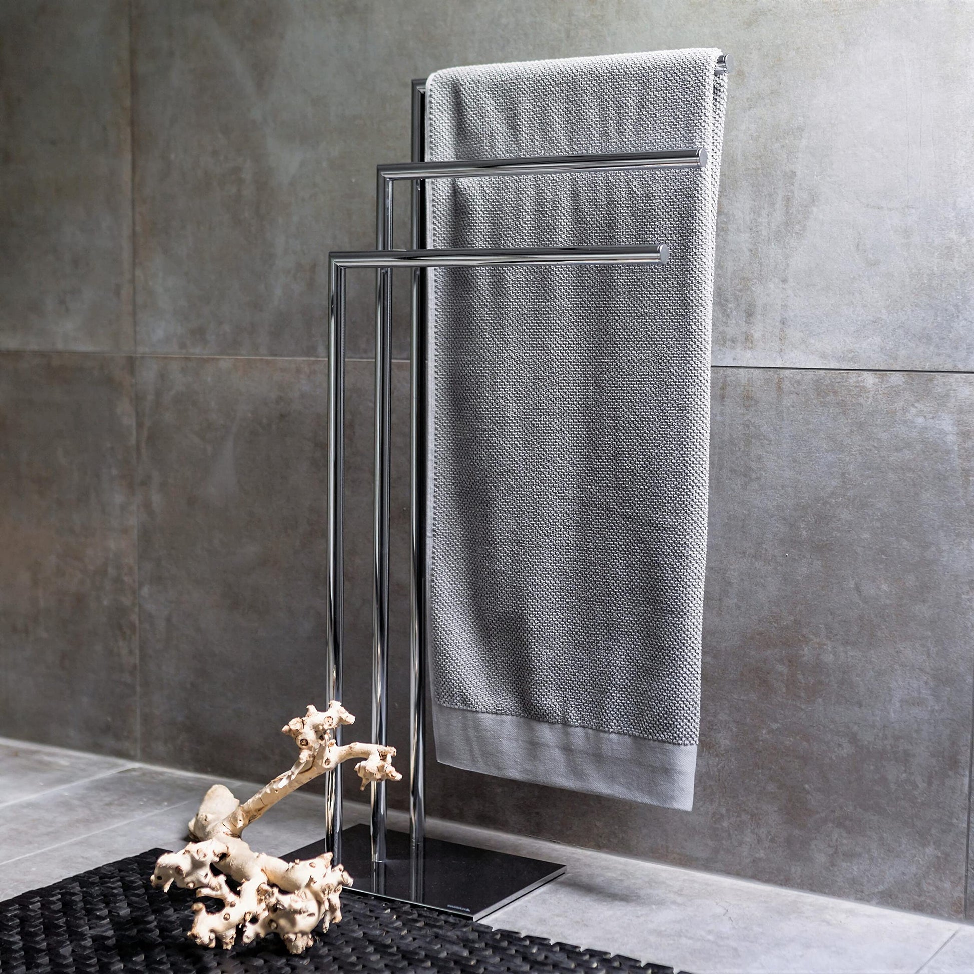 Sealskin Tube Towel Holder 3-arm, freestanding towel rack with 3 towel bars, can also be used as a clothes rack, metal, chrome