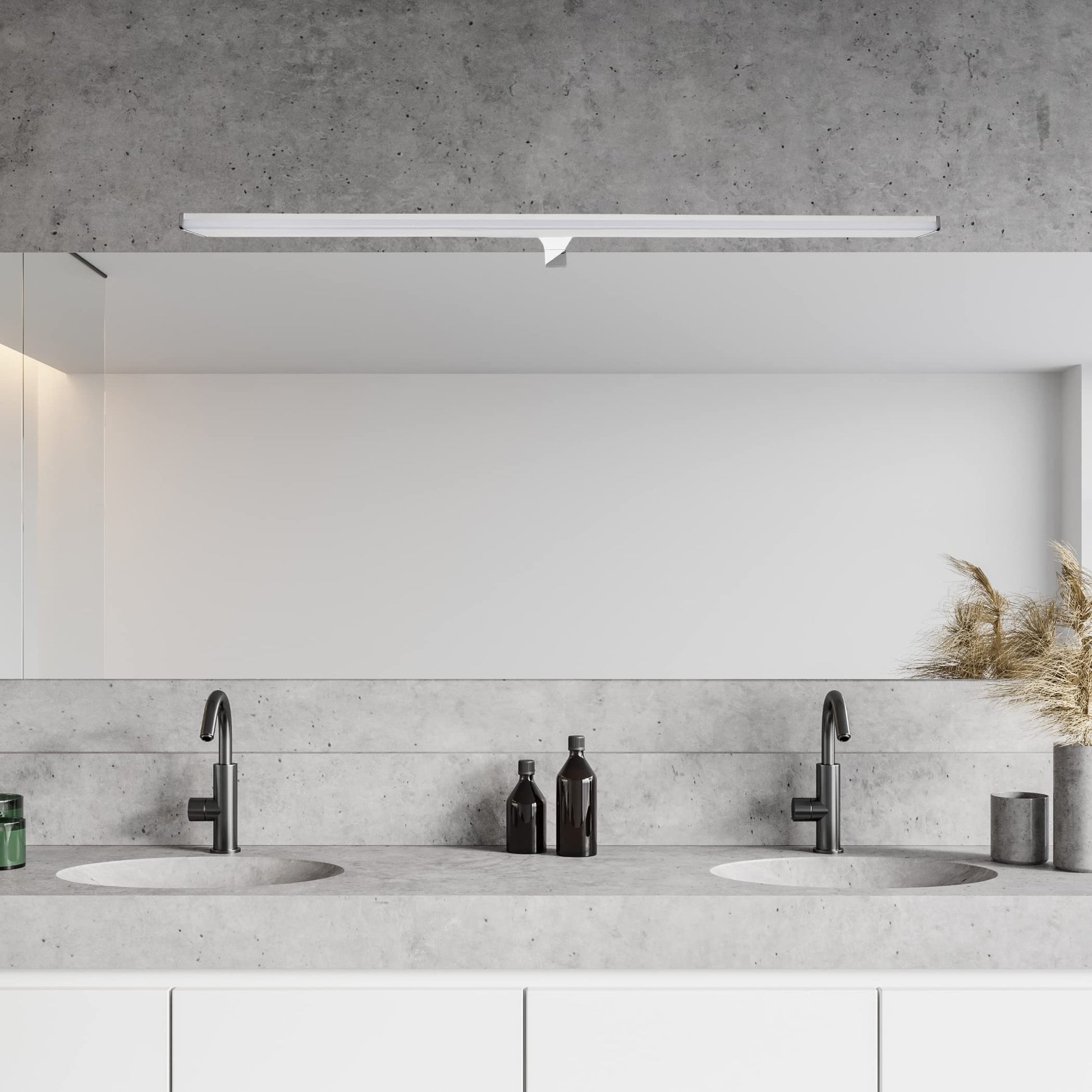 "SEBSON mirror light with integrated LED module (no additional light source needed). With only 15W power consumption, the LED mirror light reaches 1500lm - Bright, efficient and durable. This mirror light can be mounted on mirror cabinets as a cabinet light, but also flexibly as a surface light directly on the mirror. Clear illumination with neutral white light (4000K) - The LED mirror light provides 1500 lumens for bright, uniform lighting - ideal for shaving, applying makeup or styling in the bathroom. With a beam angle of 110°, this modern light does not glare and the mirror is evenly and indirectly illuminated. Ideal for wide mirror cabinets (120cm length) - With its generous length, the mirror light is ideal for mounting above wide mirrors or mirror cabinets in the bathroom."