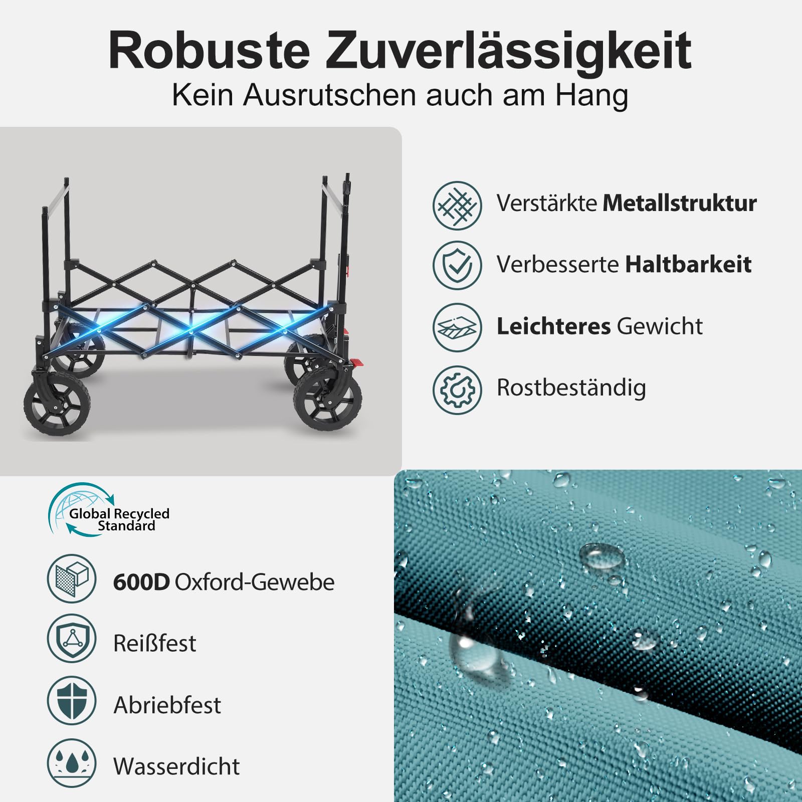 Sekey XXL folding wagon for children 150L 150KG, foldable wagon with canopy, collapsible handcart with sun protection for trips to the beach camping, roof S 4018, green