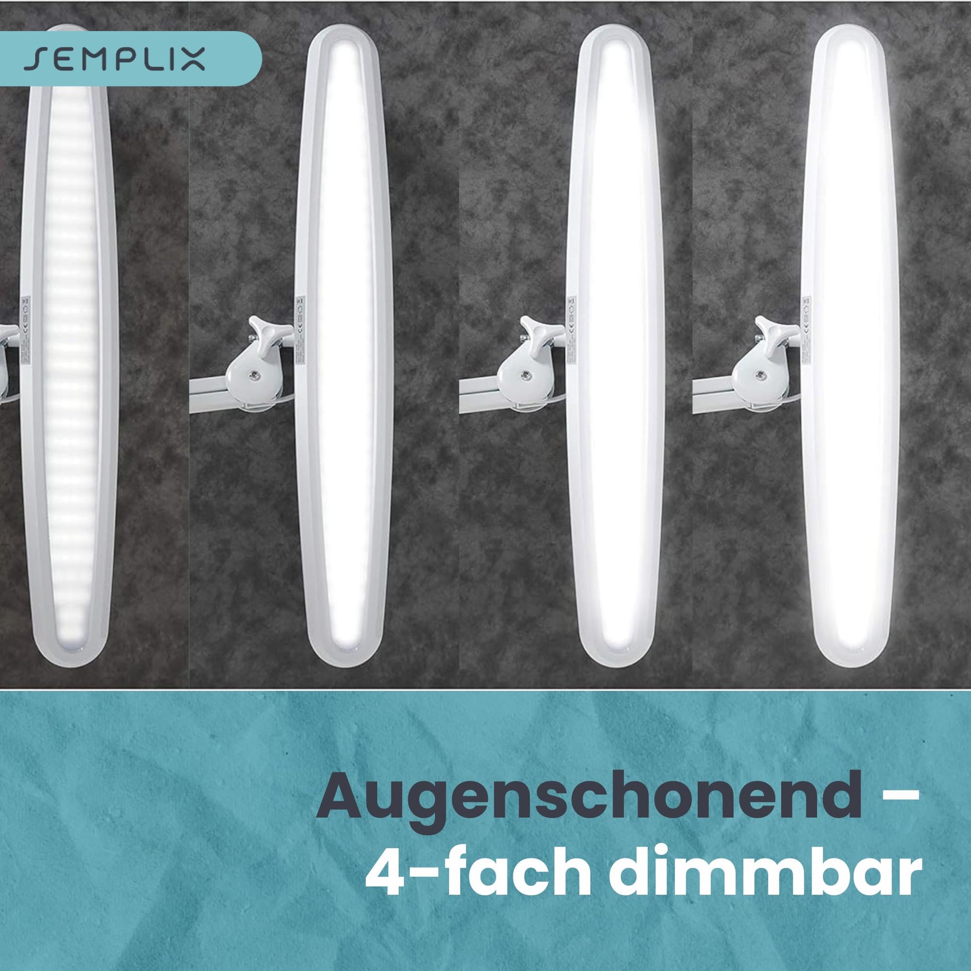 SEMPLIX LED work light in white: (117 PCS LED, 4-level dimmable) Comes with table stand base and clamp, adjustable lamp arm in height.
