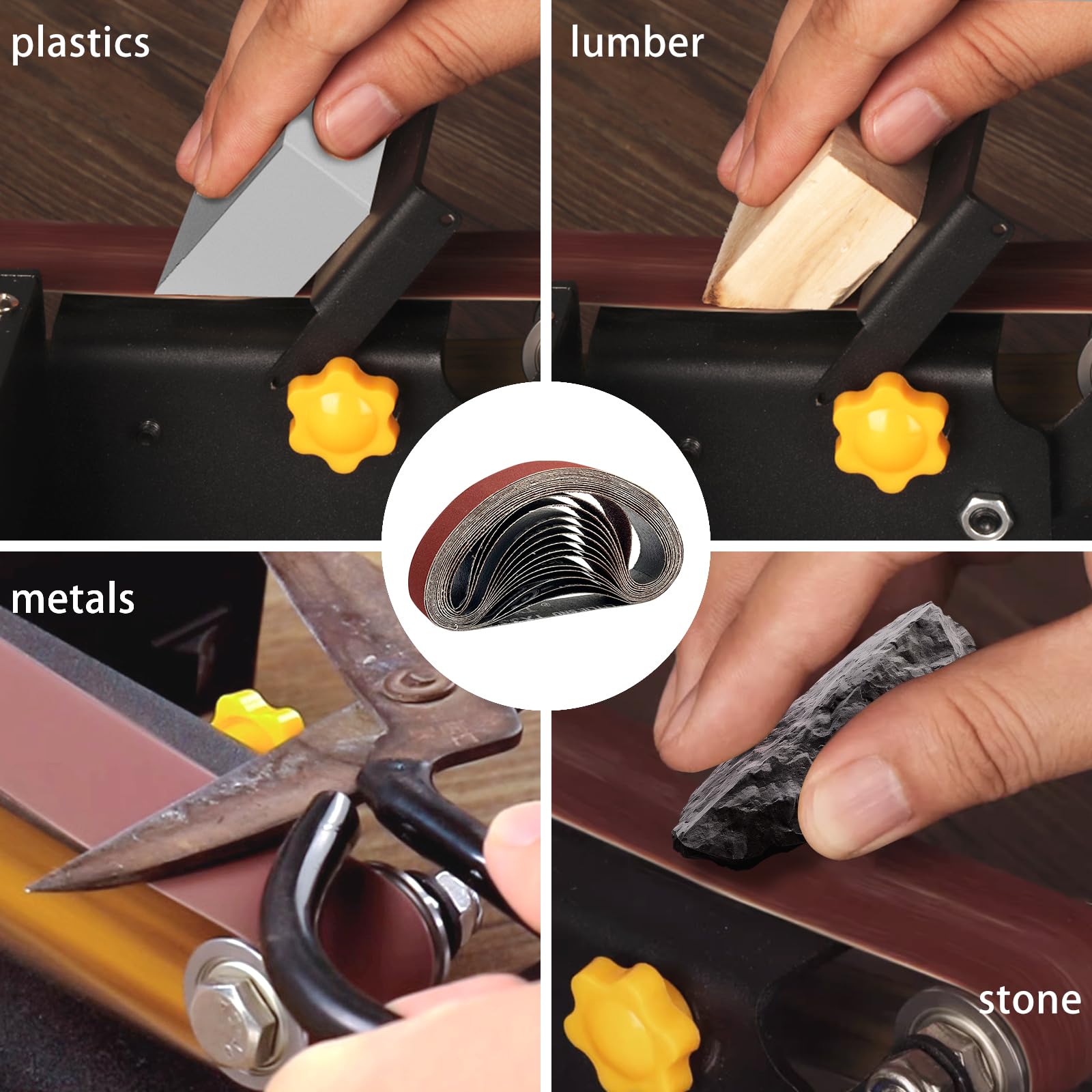"High-Quality Sanding Belts: SenmaiTools sanding belts are made of high-quality aluminum with excellent abrasion resistance and are not easily damaged during sanding; an excellent choice for sanding.