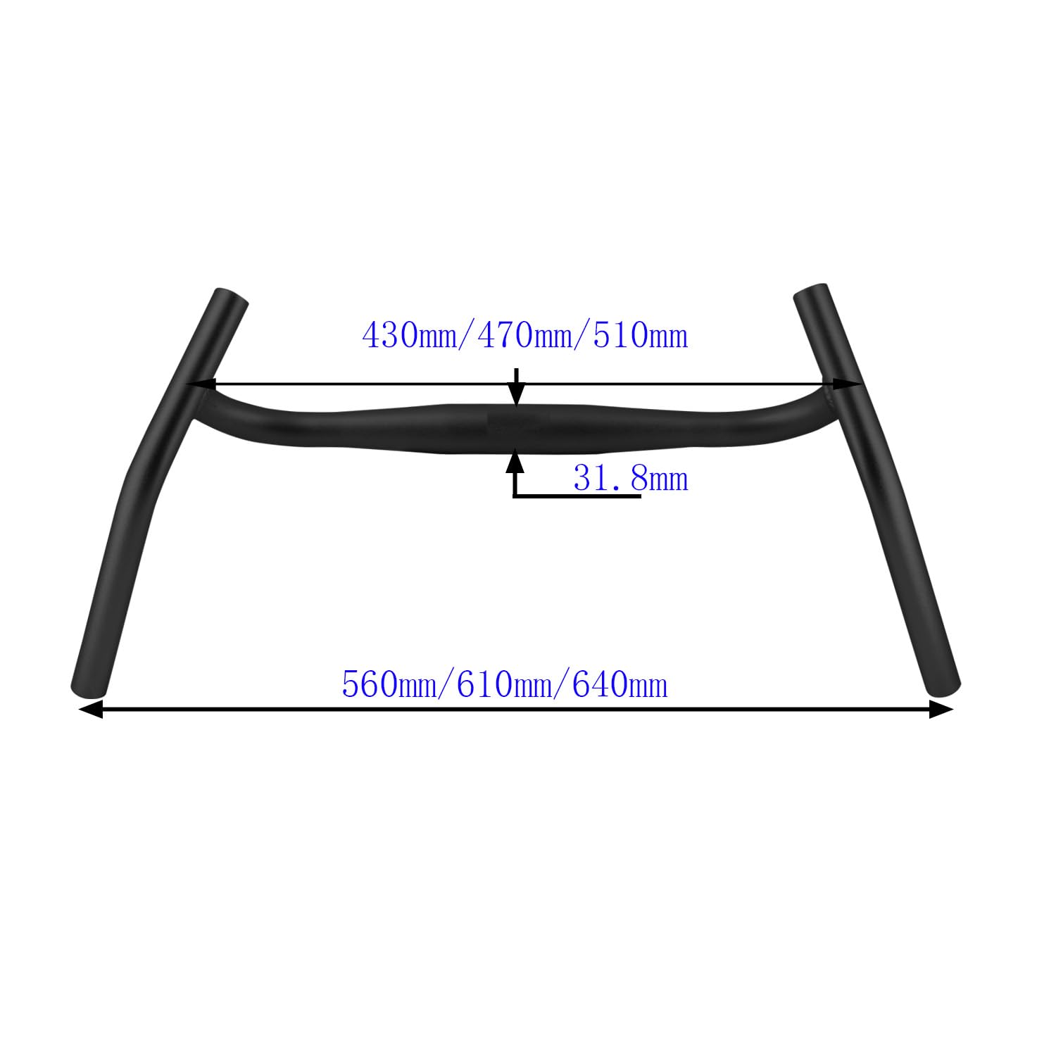 "Size: Three different handlebar lengths and you can choose what you like. Clamp diameter: 31.8mm, handlebar end diameter: 22.2mm, length: 430 x 560mm, 470 x 610mm, 510 x 640mm.",