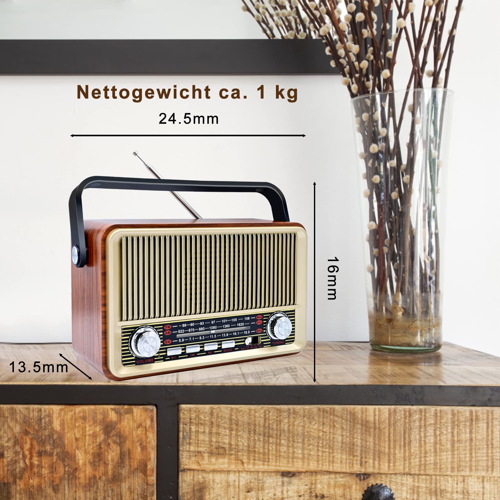 Sentasi Retro Bluetooth 5.0 Radio - Nostalgic AM SW FM vintage device with 1200mAh rechargeable battery, USB/TF support - For kitchen, office, and home