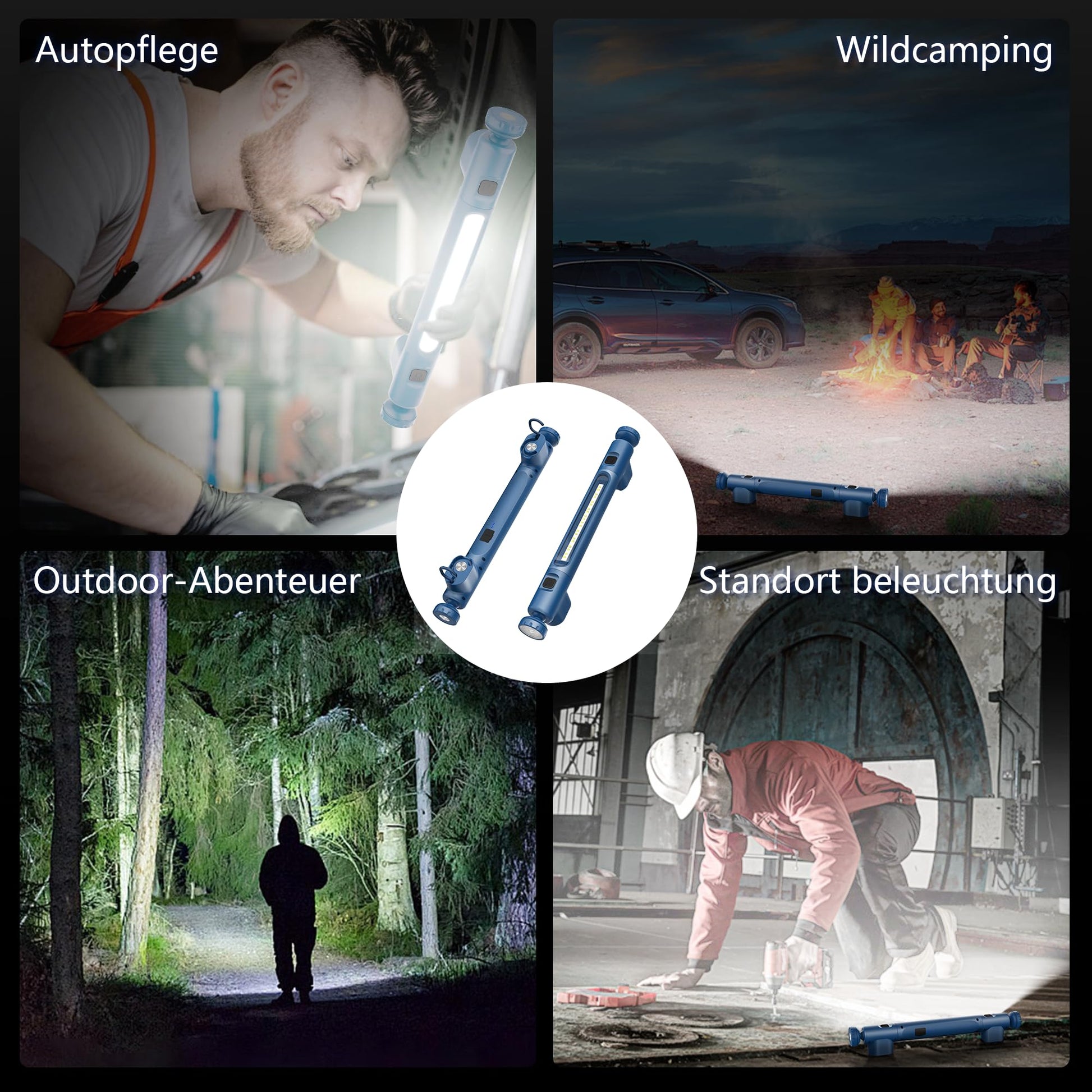 ["Upgraded LED work light】Sentoo work light shines with perfect quality and design! The lamp body is made of high-quality aluminum COB board, equipped with 20 white LEDs and 10 red LEDs. Led work light can provide brightness levels of 2500 lumens, 1200 lumens, and SOS mode. There is a flashlight at the bottom of the lamp body. Only one Sentoo work light can meet the requirements of different scenarios.","【Reliable lighting solution】The workshop lamp offers 5 lighting modes. The main light field has two brightness levels. By long pressing, you can enter the SOS mode. The flashlight at the bottom can be illuminated with one click or by long pressing to enter the stepless dimming mode, which is energy-saving, environmentally friendly, and eye-protective. The four-level battery display ensures that you never have to worry about running out of power.","【Amazing battery】This work light has undergone strict tests and has superior battery life compared to traditional work lights. It works for 3.2 hours at a brightness level of 2500 LM and up to 6.5 hours at a brightness level of 1200 LM. The wireless rechargeable engine room light comes with a Type-C cable (plug not included) and can be used as an emergency power source for charging your phone.","【Perfect workshop accessory】We have upgraded the back and base of the engine hood light with three strong magnets to ensure a secure attachment to metal surfaces. The magnetic base can rotate 360°, and the light panel can rotate 180° forwards and backwards, creating a larger lighting angle. Comes with a 360° rotating hook for easy hanging anywhere. You have your hands free and can work with peace of mind.","【Versatile use】The Led work light is always there when you need it: It is your trusted companion for camping, hiking, fishing, and adventures. It is also a reliable tool for car repairs, workshops, construction sites, docks, and home/outdoor lighting. Whether at home, in the basement, at work, on your workbench, in the workshop, or in the trunk of your car, this portable work light is the perfect choice."]