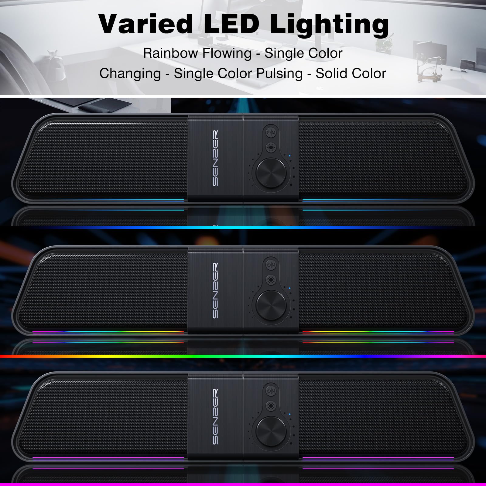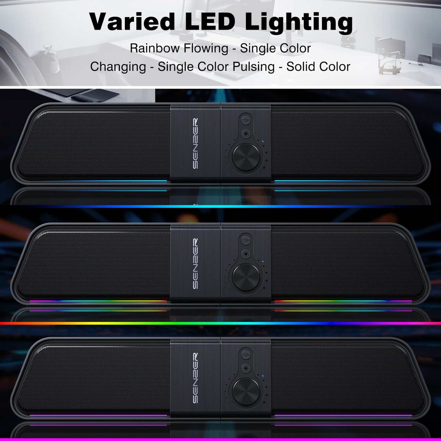 SENZER CS20 PC speakers USB Powered Bluetooth Flowing LED Gaming Soundbar Speaker for Laptop Desktop Monitor (Not 3.5mm Jack)