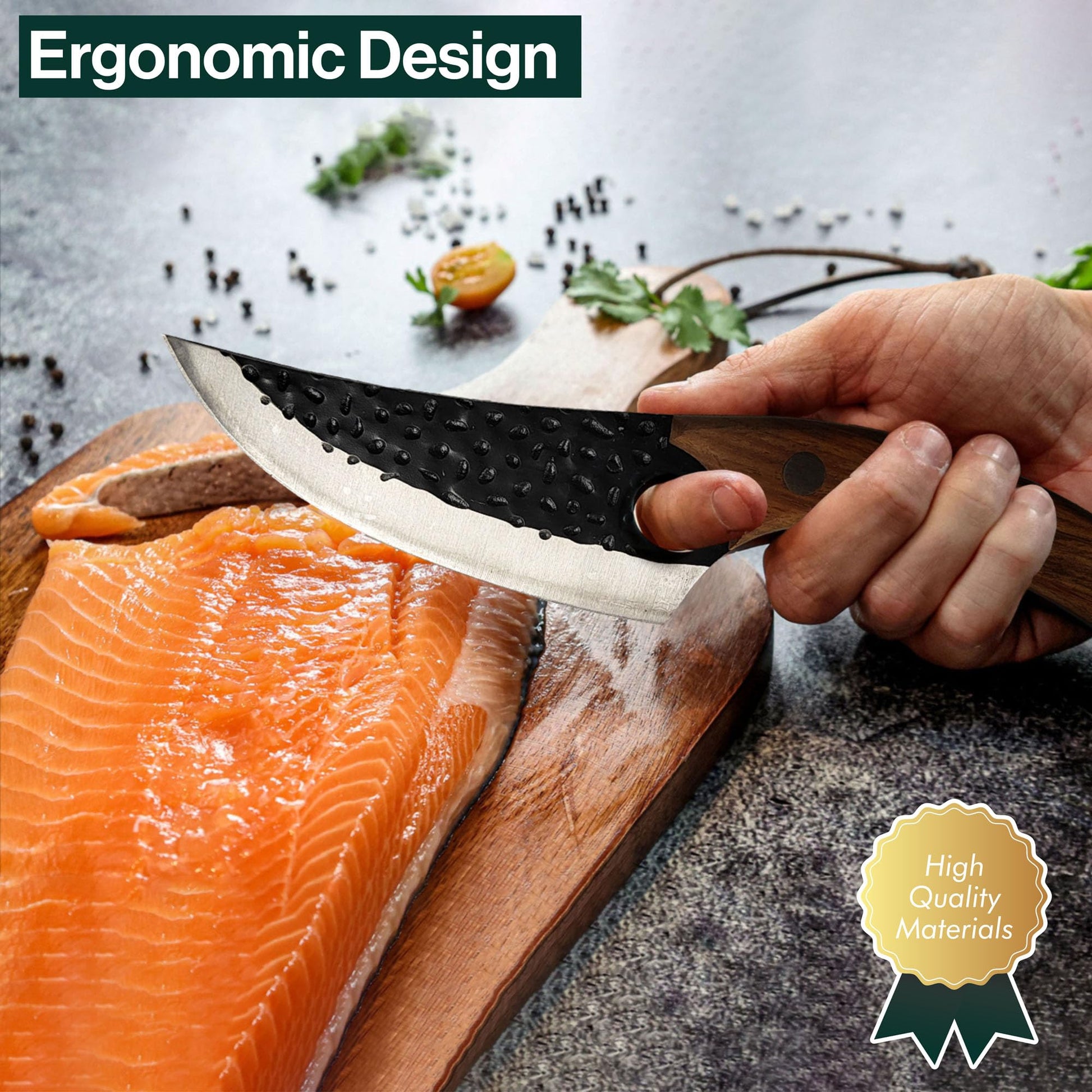 ["KITCHEN KNIFE: The Serbian knife is used by many professional chefs. Our kitchen knives stand out for their excellent edge retention. They have an incredibly sharp blade, are light and easy to clean. The smooth knife is ideal for filleting, boning, and cutting vegetables. The cleaver is best used for chopping meat, cutting bones, and mincing. This set is the perfect pair to meet all your needs!","LEATHER SHEATH: These knives can be used as indoor and outdoor cleavers. They come with a convenient soft leather sheath to protect the blade. You can attach it to a belt to carry the knife when camping outdoors. The included knife sharpening strap polishes the metal and removes burrs from the edge, keeping it hard and sharp. This set is your ideal assistant for slaughtering, fishing, camping, and grilling.","PRACTICAL DESIGN: Serbian knives are known for their unique forging texture on the blade, making them cut more effectively and food doesn't stick to the blade. Our knives have a curved wooden handle with an ergonomic design, providing you with a balanced, comfortable, and secure grip for precise control when gutting fish, cutting vegetables, or boning meat.","IDEAL SIZE: It is important for a kitchen knife to have the right size and weight for the user. A heavy knife will tire your hands when cutting and chopping for a long time. Our set of Serbian kitchen knives has just the right weight. The knife with the pointed blade weighs only 0.27 kilograms and is 28 centimeters long. The cleaver weighs 0.39 kilograms and is 26 centimeters long. They provide the perfect balance for preparing the perfect meal.","VERSATILE: This Serbian knife is also known as an Almazan knife. It stands out for its extreme strength and durability, allowing users to easily cut large pieces of meat but also finely chop onions. You can call it an all-in-one knife, a great multitasking tool for your kitchen. It's a great gift for your home chef. With this, he'll surely enjoy cooking even more!"]