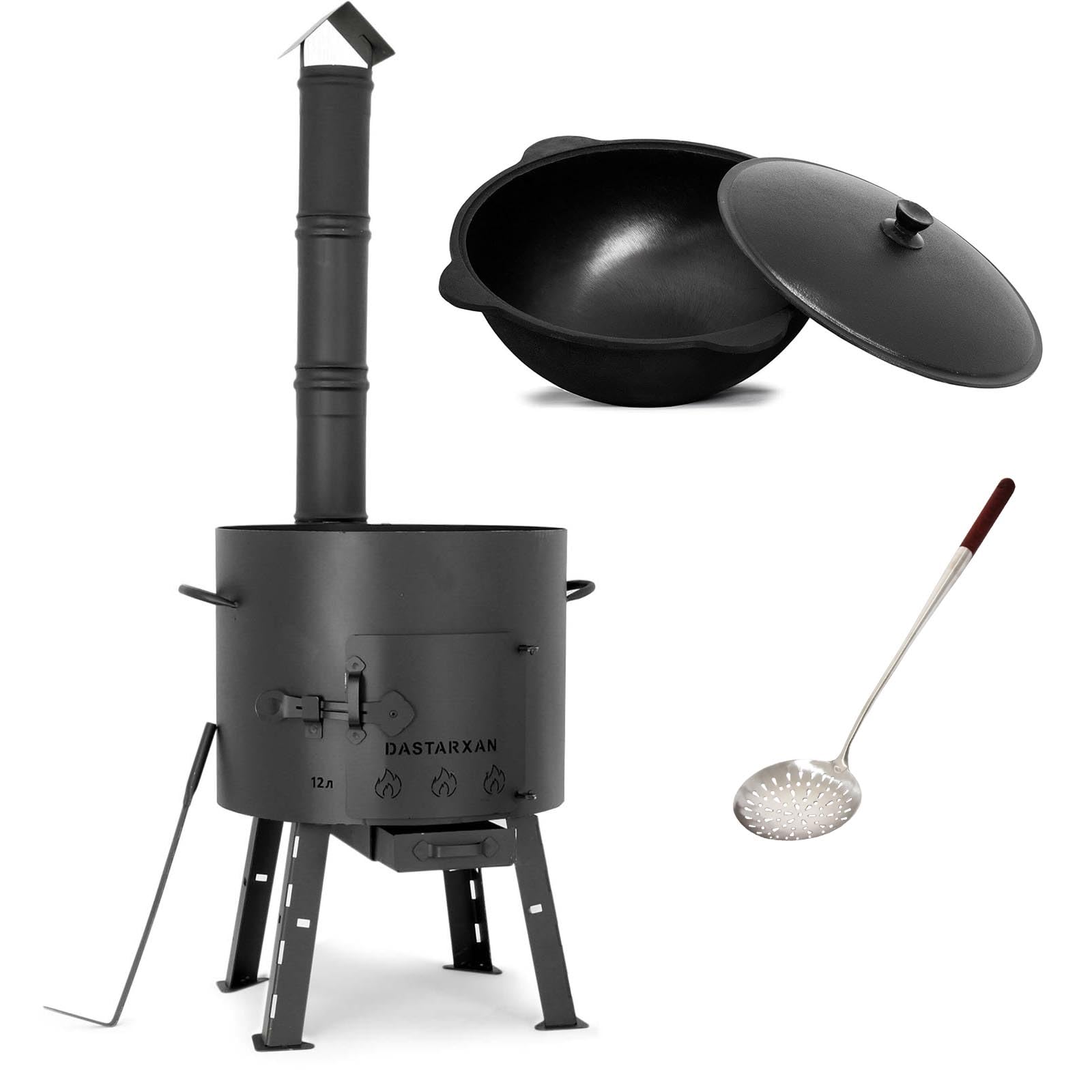"Delivery as a set with furnace + pipe + cast iron Kazan 12 liter interior smoothly ground (lid made of aluminum) + RUKAUF foam ladle",