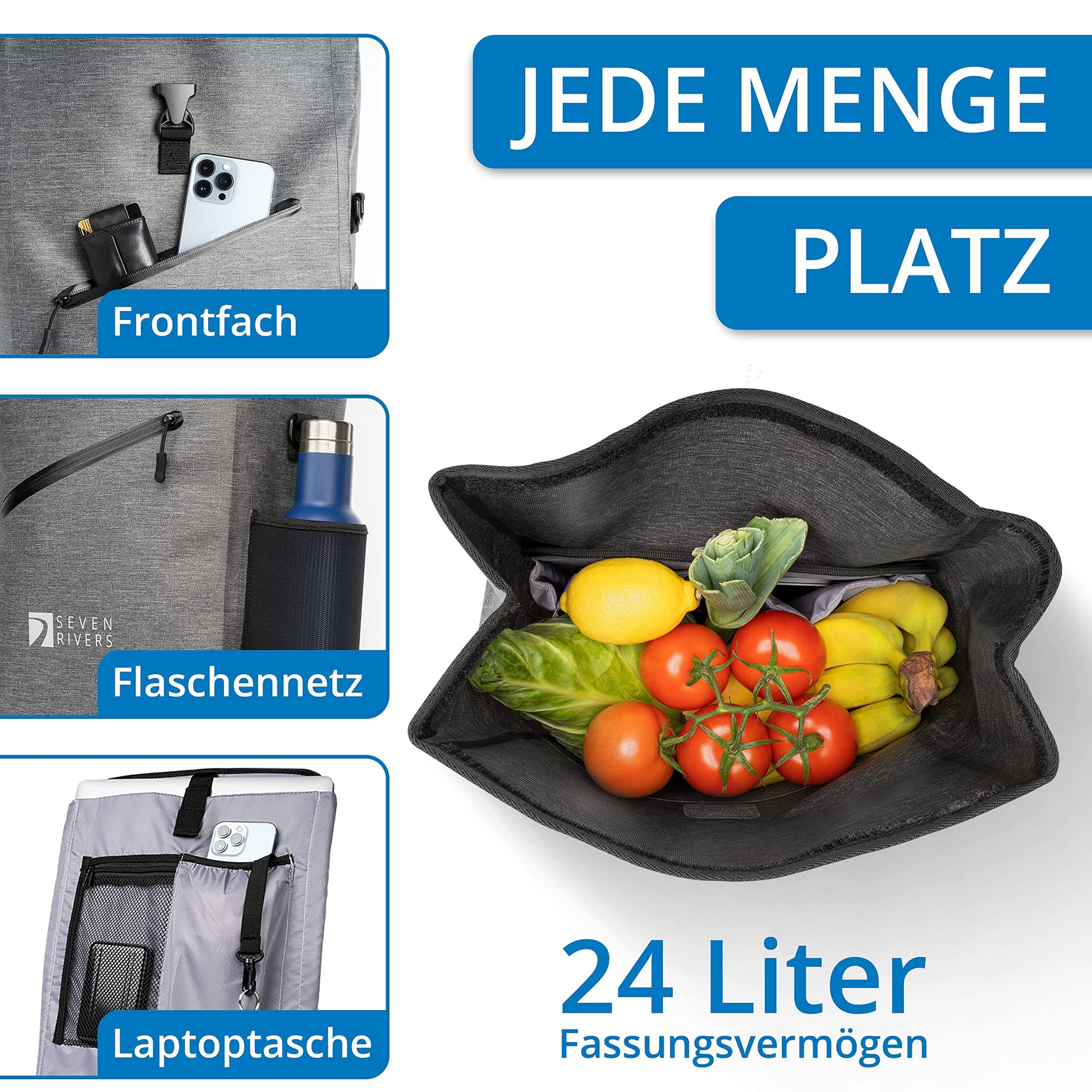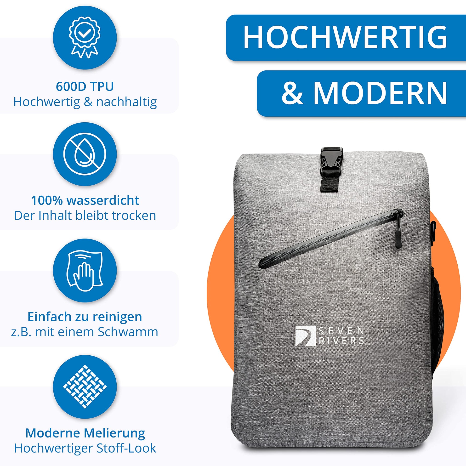 SEVENRIVERS 3 in 1 bike bag - backpack, luggage carrier bag & shoulder bag in one - waterproof & PVC free - incl. laptop bag (24L) (gray)