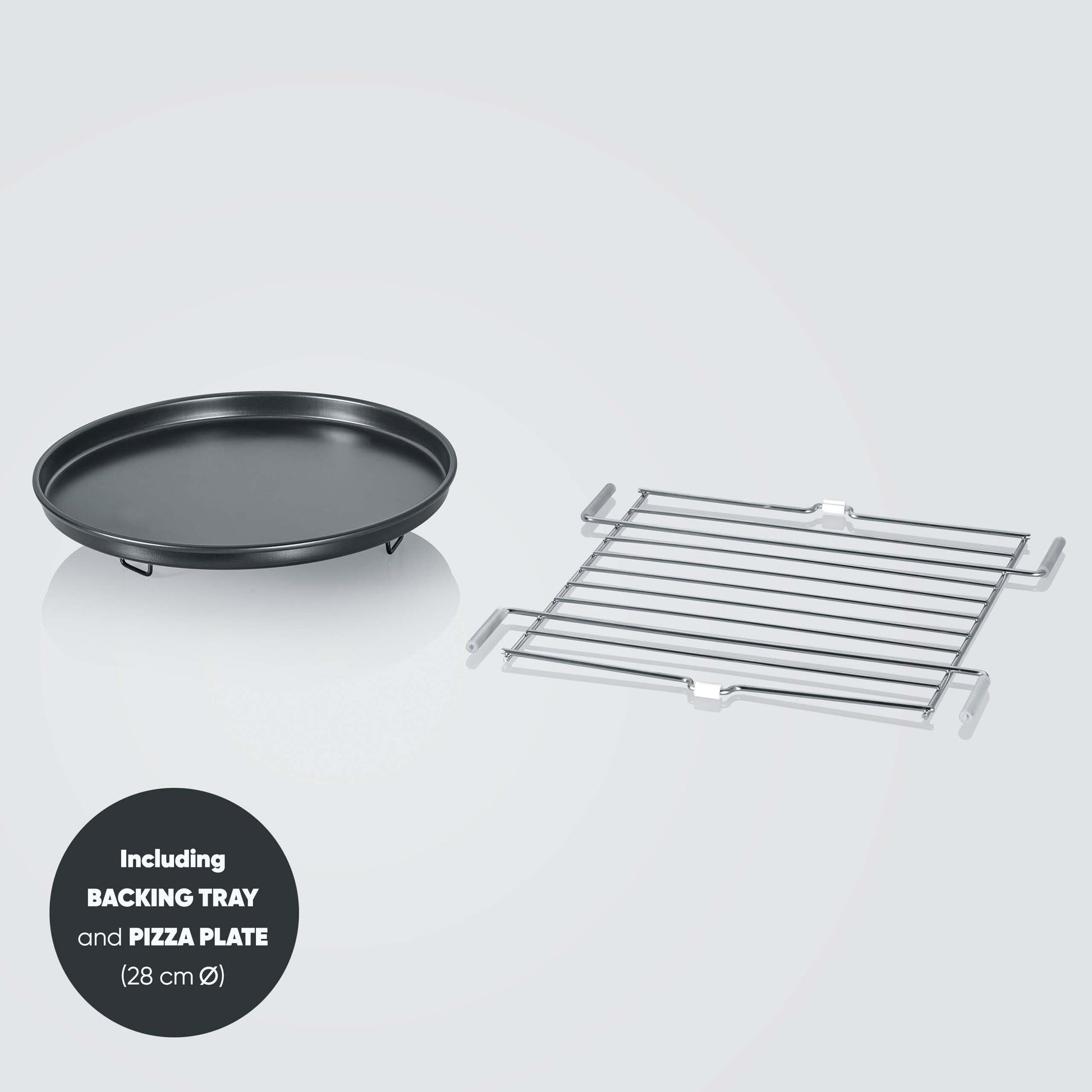 ["GLASS BOTTOM - No turntable needed - thanks to the flat glass bottom with microwave reflector, the microwave has 80% more usable space* for large dishes and square shapes","2 LEVELS: With the included grill rack, an additional level is created for simultaneous cooking or heating of 2 meals","WITH GRILL FUNCTION AND ULTRA HOT AIR FUNCTION - Perfect for quickly preparing pizza, casseroles, gratins, and meat thanks to ultra-powerful 2,050W and up to 230°C. Easy operation with 8 automatic programs","EASY CLEANING - The interior of the microwave as well as the flat glass bottom can be easily wiped with a cloth","EASY TO USE - Easy Select concept, Favourite Dish function, and 8 automatic programs for defrosting by time and weight as well as for gratinating and cooking","DETAILS - SEVERIN microwave with grill and hot air function, cooking on two levels thanks to additional insert rack, with 8 automatic programs, with 10 power levels and large usable space, 25L, 900W / 1,200W / 2,050W, item no. 7777"]