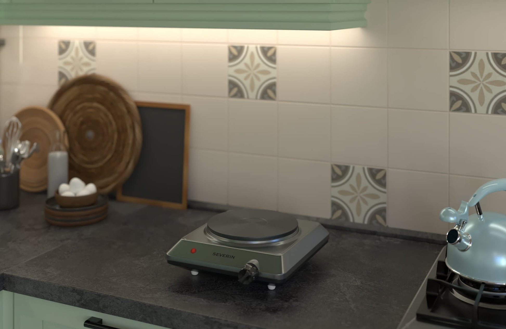 ["With limited space - With the compact dimensions of 22.5 x 29 cm, the cooktop takes up little space and is therefore ideally suited for small kitchens, offices, or on the go","Powerful heating plate - The heating rings are large enough at 118 cm for normal-sized pots and pans and provide sufficient power with 1,500 W for common dishes","Easy operation - Simply plug the cable into the socket and adjust the temperature of the hotplate to your liking using a rotary control","Safe construction - The camping hotplate features a housing with a heat-resistant stainless steel top and a control light for temperature adjustment","Details - SEVERIN mobile hotplate in a compact design for on the go, in the office, or in small spaces at home, stepless temperature adjustment, total 1,500 W, item no. 1092"]