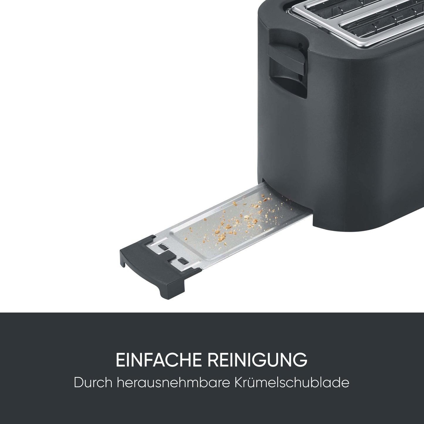 ["Uniform browning - Automatic bread slice centering for perfectly toasted slices.","Integrated bun toaster - For easily warming up buns.","Individual browning - Adjustable browning level with warming, defrosting function, and release button with indicator light.","Stylish and easy to clean - Heat-insulating housing in modern matte finish including crumb tray.","Details - SEVERIN automatic long slot toaster, bun toaster attachment, 2 long slot toasting slots, different warming levels, 4-slice toaster, 1400 W, black, matte finish, item no. 2591"]