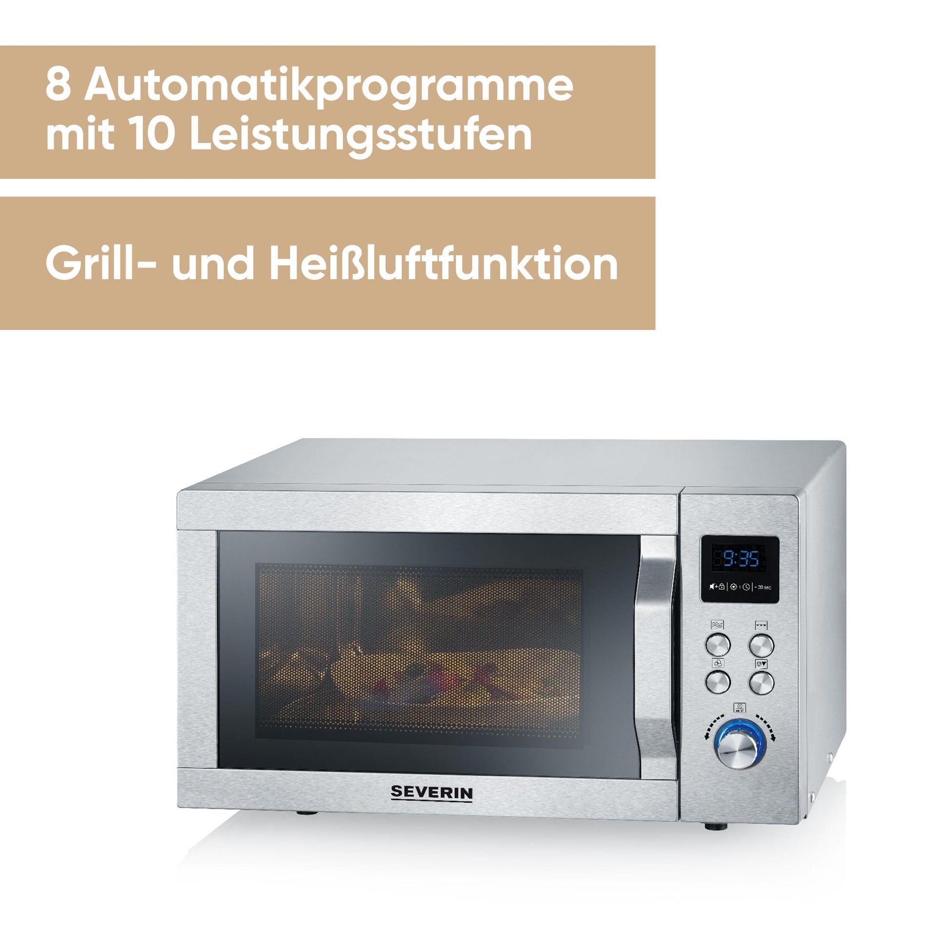 SEVERIN microwave with grill and hot air function 3-in-1, for thawing, steaming and heating, microwave with turntable, brushed stainless steel/silver, MW 7774