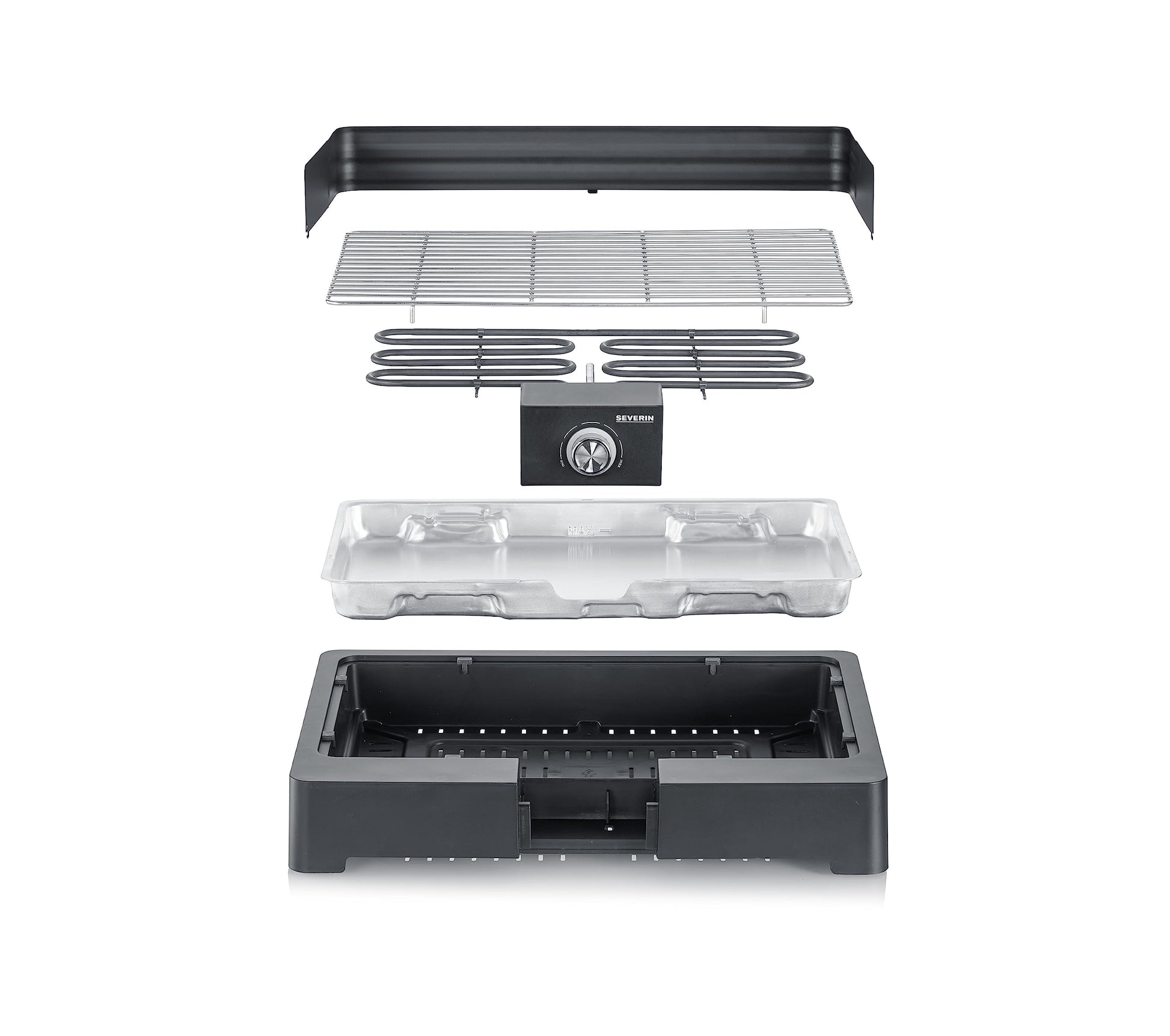 ["Great electric BBQ grill with fast grill start is particularly quick to use thanks to short heating time: for everything the grilling heart desires,"No burning - Thanks to SafeTouch casing, the touchable surfaces do not get too hot even during operation, so the balcony grill can be easily transported,"Easy operation - The temperature range on the SEVERIN table grill can be easily set with the rotary control. Control is done via the LED ring,"Easy cleaning - Thanks to removable parts, cleaning is particularly easy. Water in the grill pan prevents grease fires and smoke formation,"Details - SEVERIN Electric Grill with wind protection and thermostat-controlled heating element, suitable for indoor and outdoor use, high-quality stainless steel grill grate, 2,200 W, item no. 8565"]