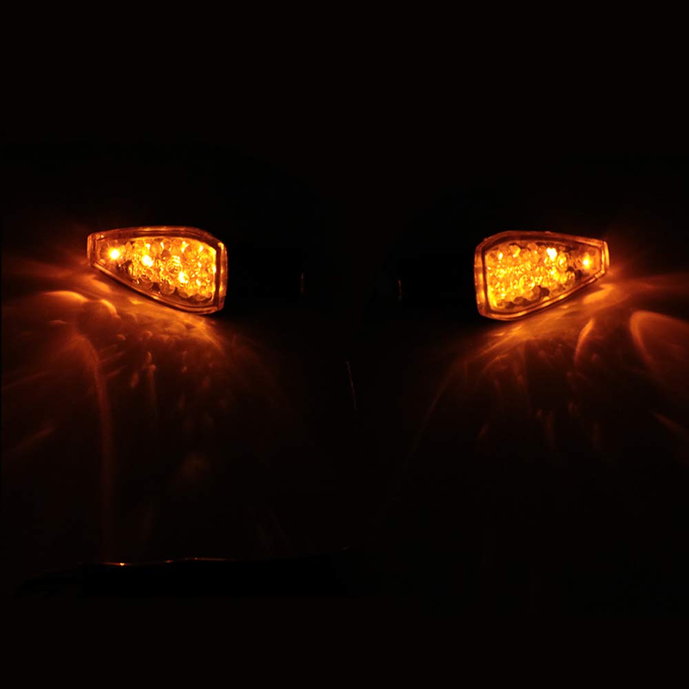 ["【Super Power】12V 14LED, super bright, can be seen from a distance","【Universal】For motorcycle scooter quad cruiser Harley Kawasaki Yamaha Suzuki Honda off road","【Easy Installation】The black line is negative, the yellow line is positive; Install the device directly in the same location without needing to add other parts","【Waterproof】IP68 waterproof, durable, high quality waterproof plastic material","【Stylish】Unique design, make your bike cool"]