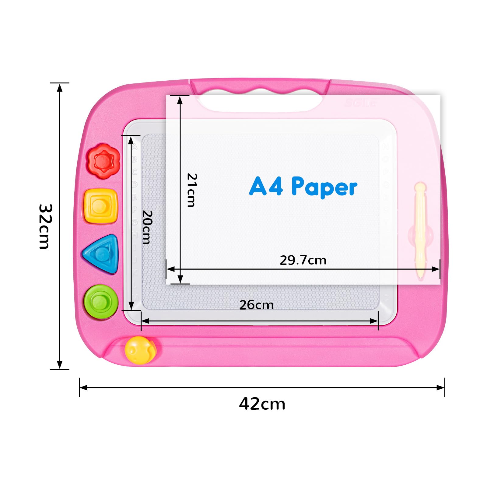 SGILE Large Magnetic Drawing Board Magic Doodle Board, 42x32cm Sketch Pad Magic Drawing Board Painting Board with 4 Shape Stamps for Kids Ages 3+ Gift, Pink