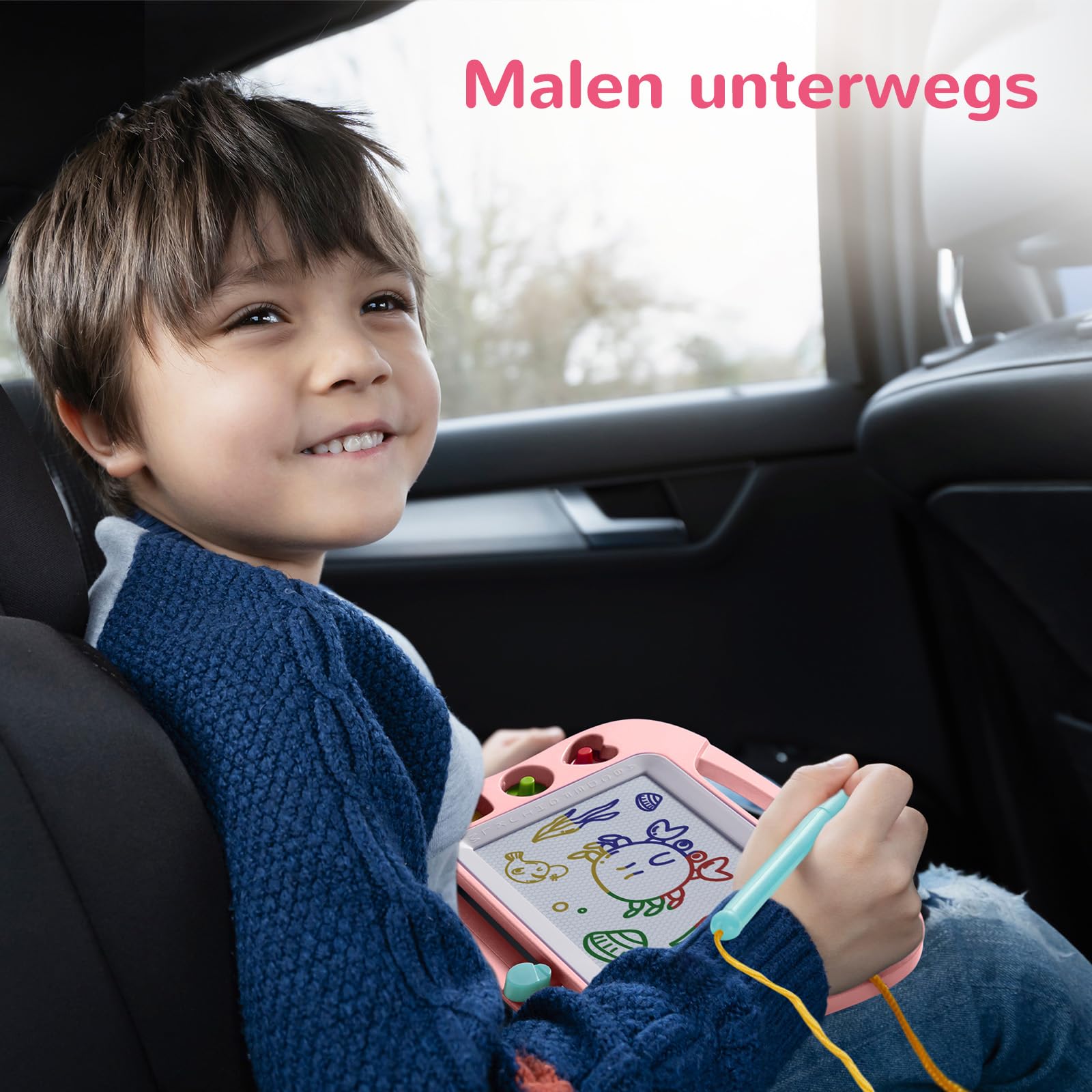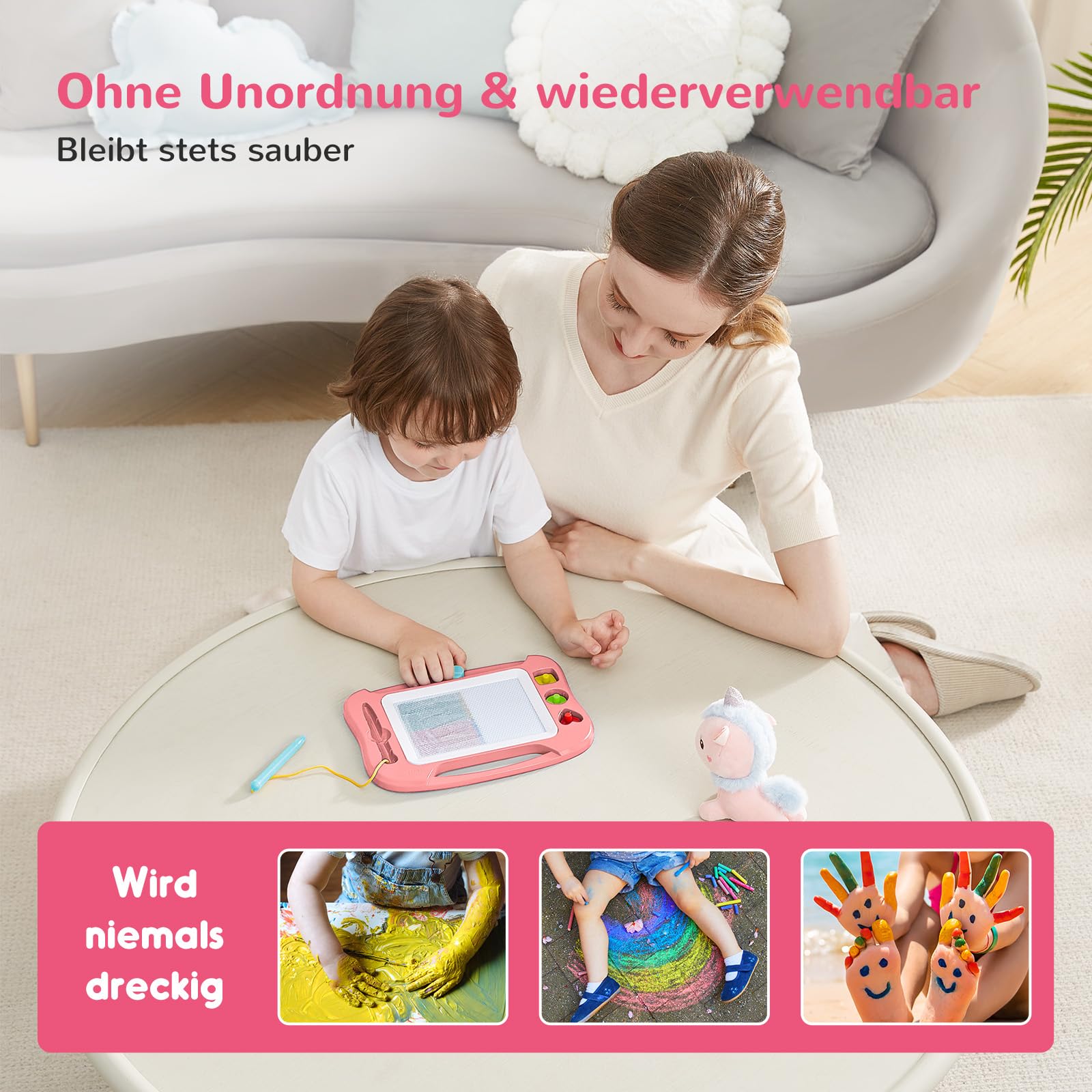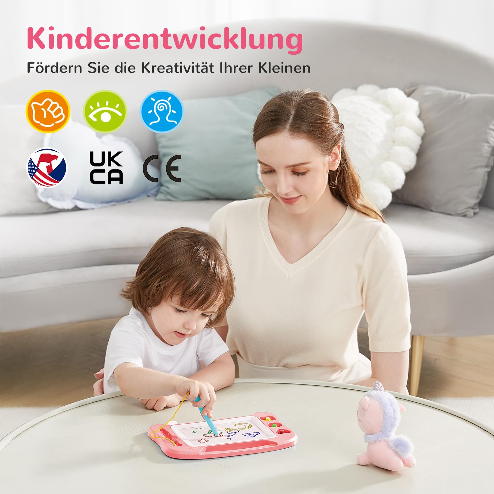 SGILE Magic Drawing Board Kids Magnetic Doodle Board, Colorful erasable magnetic board with magnetic pen and 3 stamps, Magic drawing board for travel, birthday, educational gift for toddlers, pink