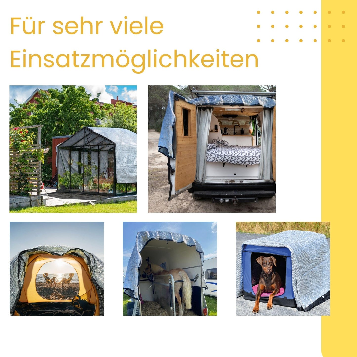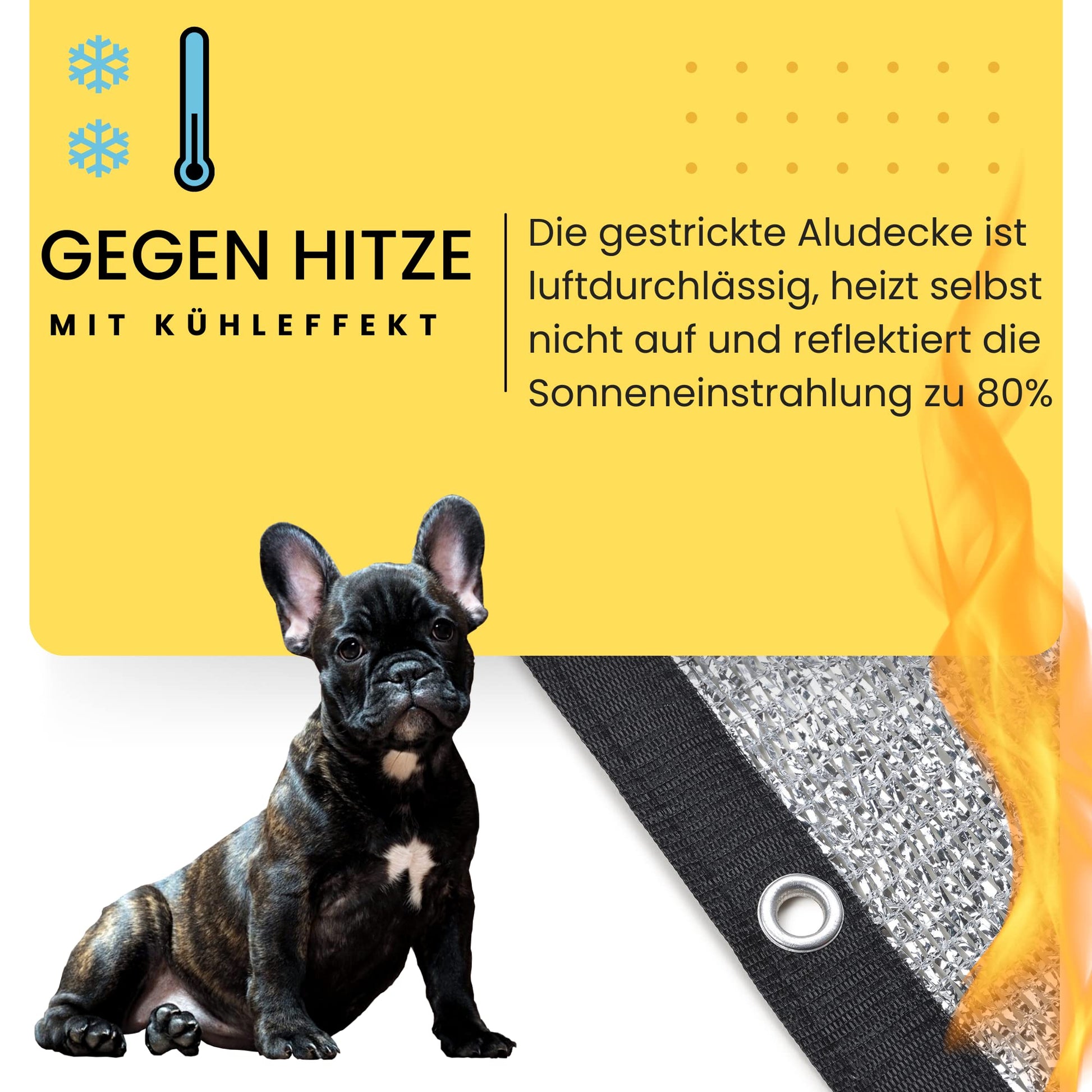 "Cooling effect for dogs & pets: The breathable aluminum net does not heat up and provides shade for dog crates, minibuses, or camper vans - ideal for traveling with pets."
