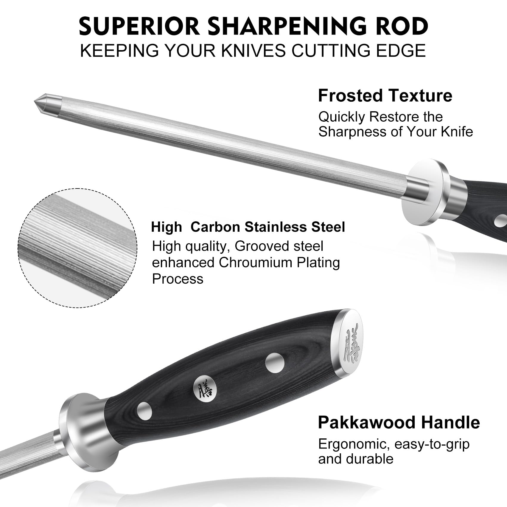 ["Damascus Steel Kitchen Knife Set: SHAN ZU knife set with block includes: Chef's knife, Santoku knife, Bread knife, Utility knife, Paring knife, Knife sharpening rod, and Knife block. All blades are made of pure Damascus steel.","Unrivaled Sharpness: Genuine 67 layers of Damascus material combining a Japanese 10Cr15CoMoV super steel core with 33 outer layers of stainless steel on each side. This sharp knife set is made of high-quality, high-hardness material.","Incredible Design: The hardness of each knife in GYO reaches up to 62 HRC for unrivaled performance and incredible edge retention. The superiority of this knife set is evident in the G10 handle and distinctive blade pattern.","Meaning of GYO: 御(GYO) means honor in Japanese, SHAN ZU uses this name to pursue the highest standards professionally, personally, and ethically. Hopefully gaining customers' recognition.","Worry-Free Customer Service: SHAN ZU offers a 2-year after-sales warranty. If you have any questions or requests, please do not hesitate to contact us, and we are here at all times to help solve problems. The SHAN ZU chef knife set is a practical and creative gift for your loved ones."]