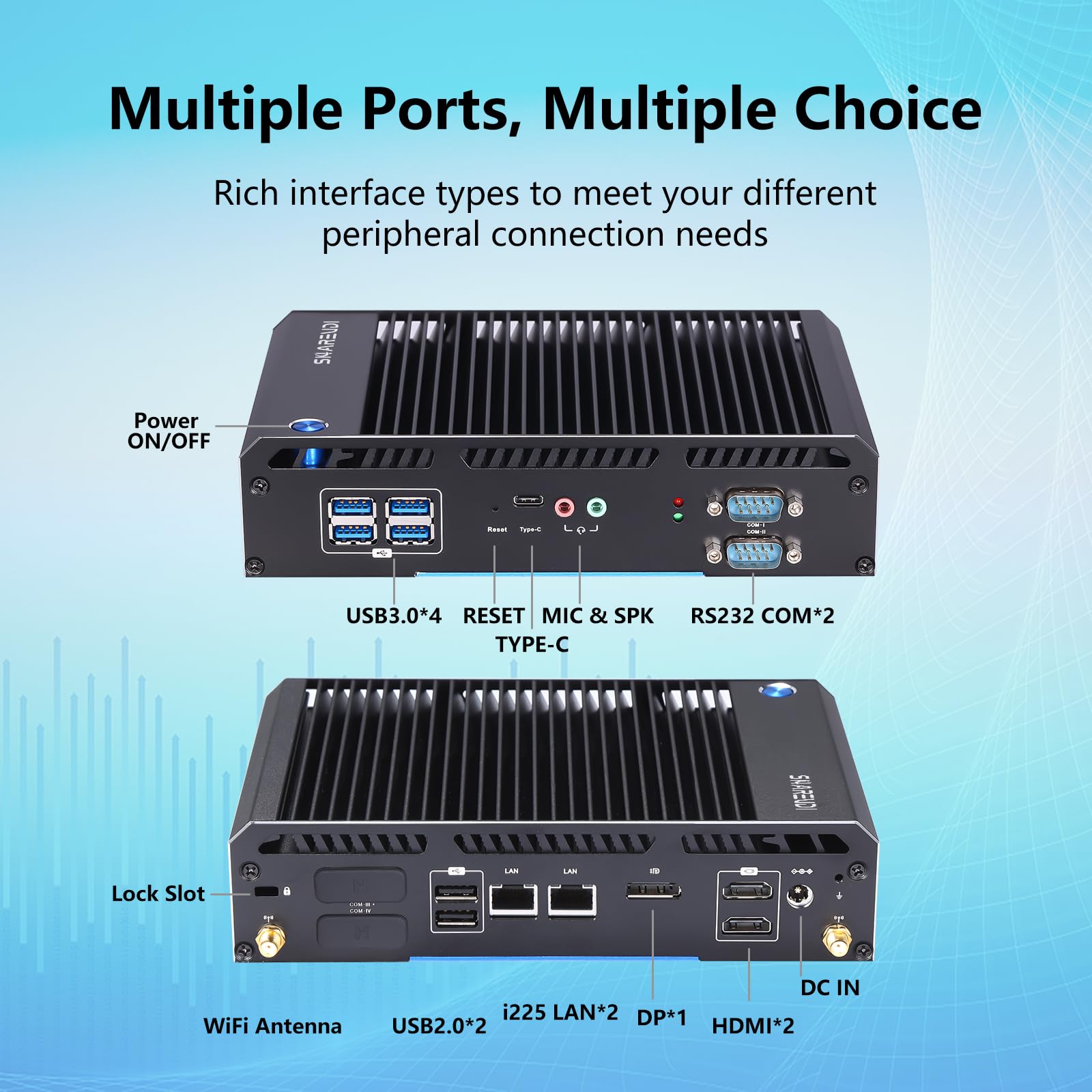 Sharevdi Fanless Industrial Mini PC, Intel Celeron J4125 Mini Desktop Computer with Windows 11 Pro, Dual HDMI/DP/BT4.2/2.4G+5G Dual Band WiFi, 8GB DDR4 RAM 128GB SSD